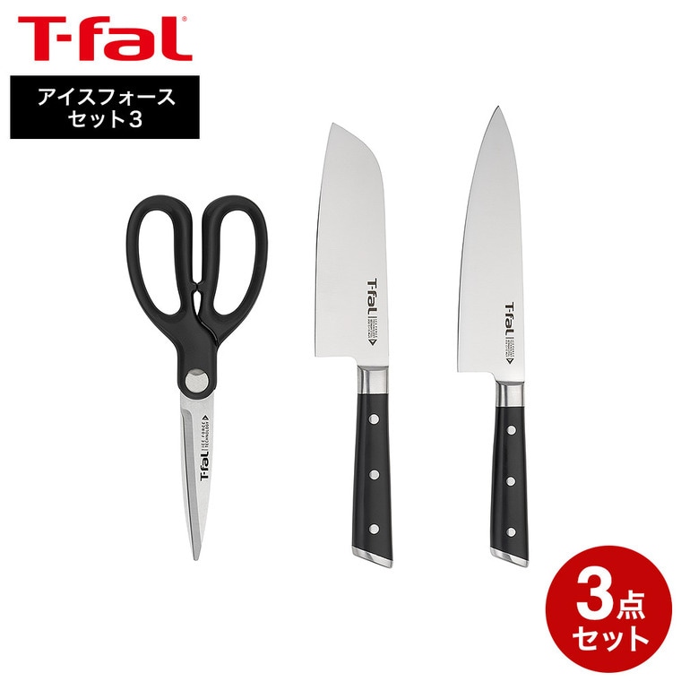 ティファール T-fal アイスフォース セット3(シェフナイフ18cm/三徳ナイフ14.5cm/キッチンシザーズ) K2423S 送料無料 / 包丁 牛刀 三徳包丁 万能ナイフ 万能包丁 キッチンバサミ 10年保証 調理器具 キッチンツール JGS