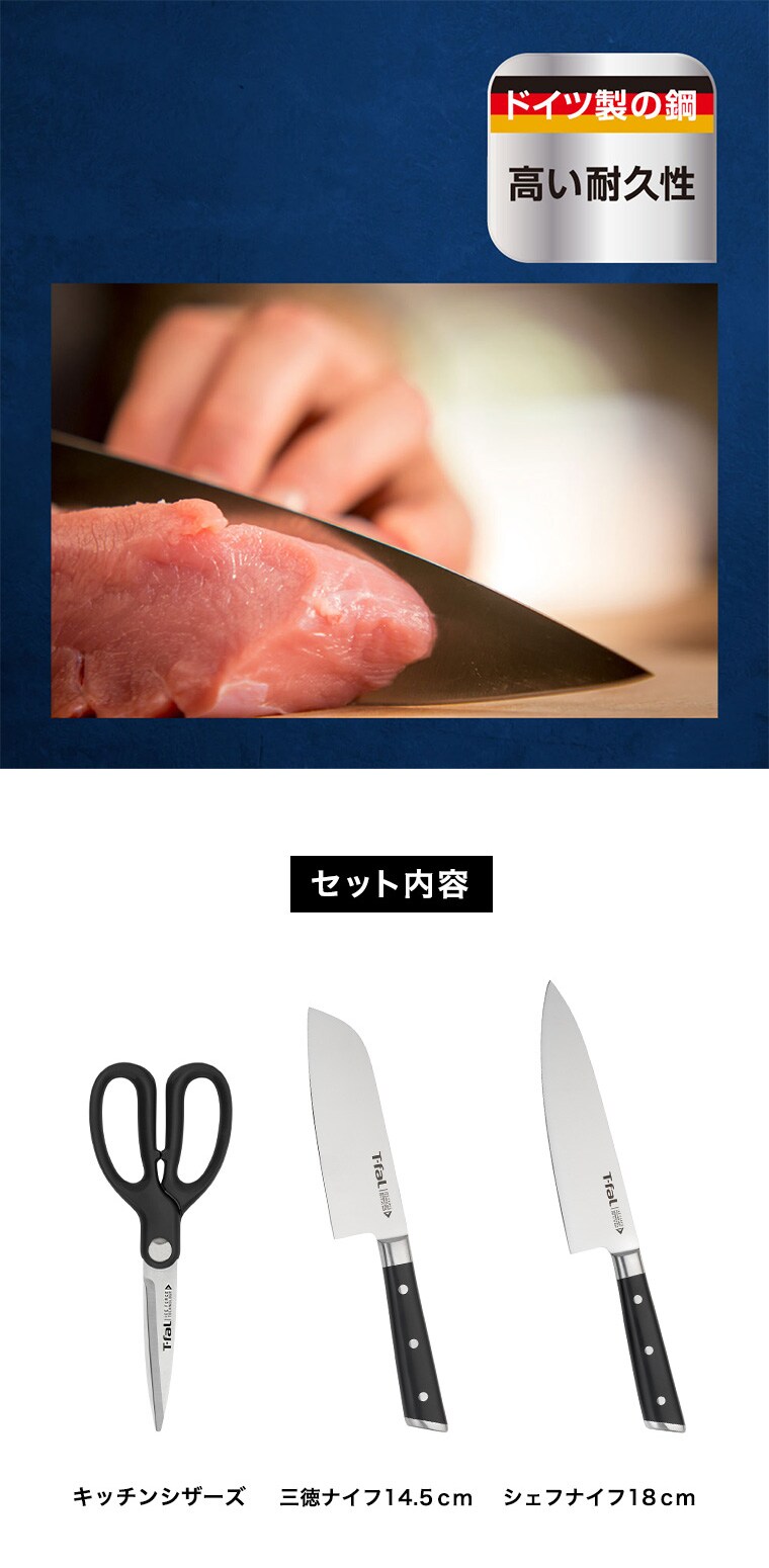 ティファール T-fal アイスフォース セット3(シェフナイフ18cm/三徳ナイフ14.5cm/キッチンシザーズ) K2423S 送料無料 / 包丁 牛刀 三徳包丁 万能ナイフ 万能包丁 キッチンバサミ 10年保証 調理器具 キッチンツール JGSのレビュー