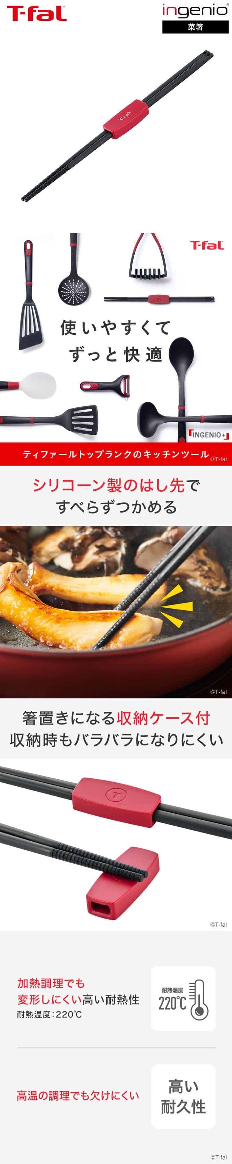 ティファール T-fal キッチンツール インジニオ+ 菜ばし K19340 / 菜箸 おはし さいばし 食洗機対応 耐久性 耐熱 収納ケース付き 箸置き 先端 シリコン 調理器具 台所用品 t-fal tfal JGS