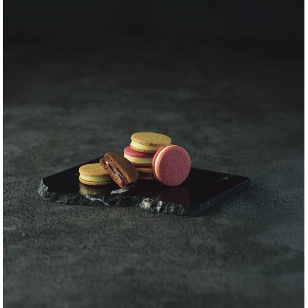 とろっと溢れ出るキャラメルソース入りの分厚いチョコレートを、サクサク食感のクッキーで挟んだちょっと贅沢なショコラサンド。贈りものにも、自分のご褒美にもおすすめの一品です。