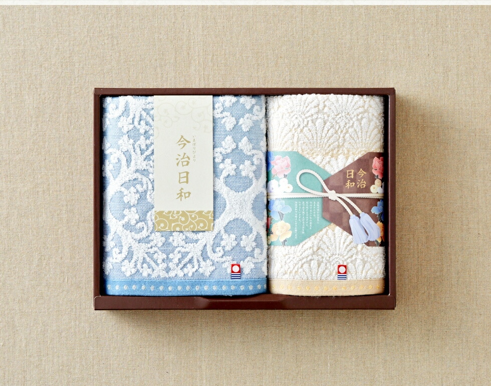 愛媛県今治の大自然を思わせる海と大地の色彩で伝統柄をあしらったタオル。「永遠に続く繁栄」「長寿」を意味する唐草模様と「豊かさと恵み」の象徴とされる貝の模様が織られたタオルは、還暦祝いや結婚祝いのとくべつな日の贈り物としてぴったり。使い続けるほどに品質の良さを実感できるタオルです。タオルと同様に、貝と唐草模様で彩られた上品なギフトボックスでお届け。 |