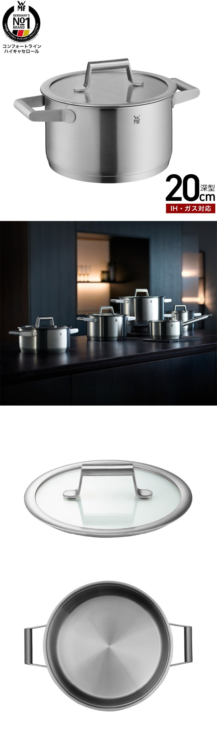 WMF コンフォートライン ハイキャセロール 両手鍋 20cm W0729206040 IH対応 ガス火対応 送料無料 / ヴェーエムエフ 深型両手鍋 万能鍋 ガラス蓋付き 目盛り付き ふた付き 煮込み料理 スープ 食洗機対応 オーブン対応 調理器具 JGS