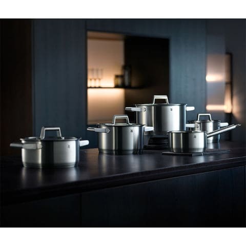 WMF独自の高品質ステンレスCromargan(R)(クロマーガン)と高い熱伝導を誇る独自の底面三層構造TransTherm(R) universal base(トランサムユニバーサルベース)により、耐久性と快適な使用性を両立した鍋シリーズです。