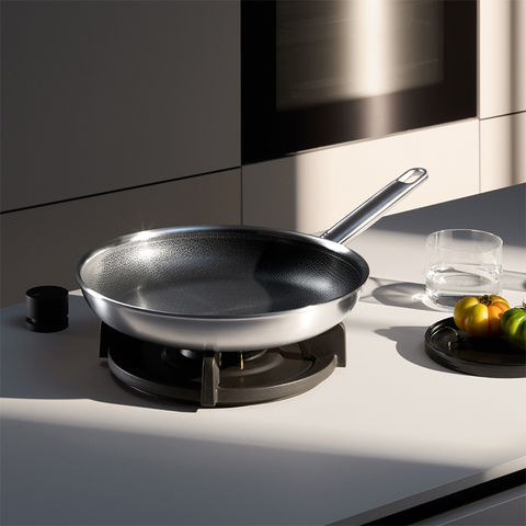 耐久性と熱伝導の高い多層構造の本体と特許技術の底面ウルトラフラット設計により油がフライパン全体に均一にすばやく広がり、ムラのない美しい焼き色に仕上がります。