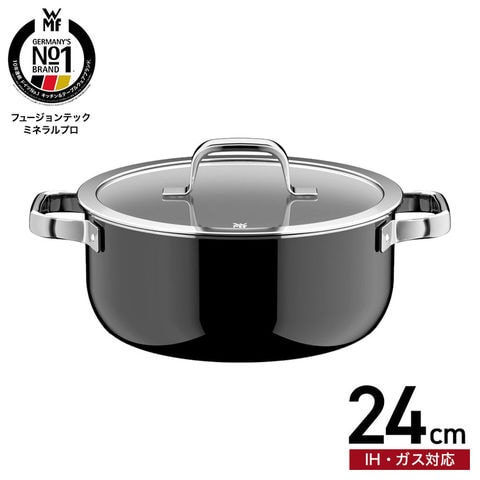 WMF ヴェーエムエフ フュージョンテック ミネラルプロ ローキャセロール 24cm IH対応 ガス火対応 送料無料 / 浅型 両手鍋 鍋 蓋付き ふた付き ガラス蓋 無水料理 煮込み料理 食洗機対応 オーブン対応 調理器具 10年保証 JGS / ブラック(BL)