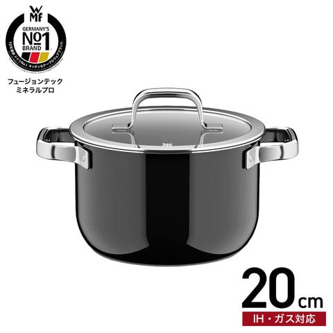 WMF ヴェーエムエフ フュージョンテック ミネラルプロ ハイキャセロール 20cm IH対応 ガス火対応 送料無料 / 深型 両手鍋 寸胴鍋 蓋付き ふた付き ガラス蓋 無水料理 煮込み 揚げ物 炊飯 食洗機対応 オーブン対応 調理器具 10年保証 JGS / ブラック(BL)