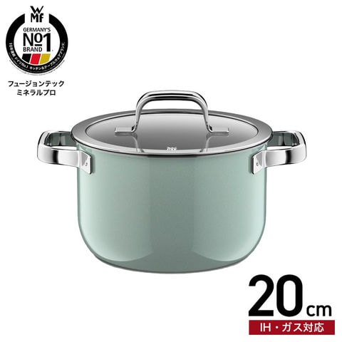 WMF ヴェーエムエフ フュージョンテック ミネラルプロ ハイキャセロール 20cm IH対応 ガス火対応 送料無料 / 深型 両手鍋 寸胴鍋 蓋付き ふた付き ガラス蓋 無水料理 煮込み 揚げ物 炊飯 食洗機対応 オーブン対応 調理器具 10年保証 JGS / エメラルド(EM)