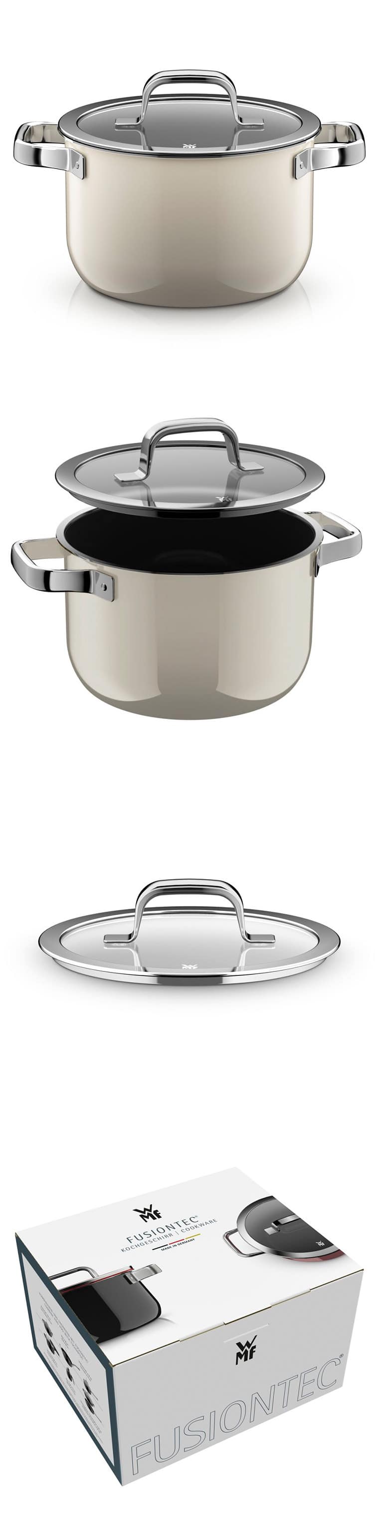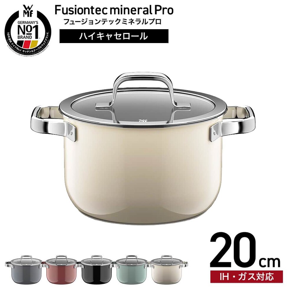 WMF ヴェーエムエフ フュージョンテック ミネラルプロ ハイキャセロール 20cm IH対応 ガス火対応 送料無料 / 深型 両手鍋 寸胴鍋 蓋付き ふた付き ガラス蓋 無水料理 煮込み 揚げ物 炊飯 食洗機対応 オーブン対応 調理器具 10年保証 JGS / ミルキークォーツ(MQ)