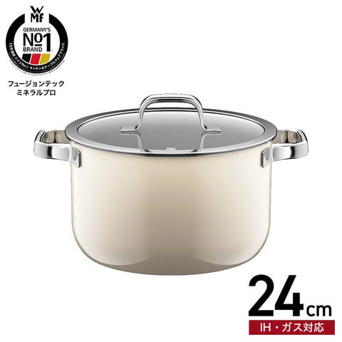 WMF ヴェーエムエフ フュージョンテック ミネラルプロ ハイキャセロール 24cm IH対応 ガス火対応 送料無料 / 深型 両手鍋 寸胴鍋 蓋付き ふた付き ガラス蓋 無水料理 煮込み 揚げ物 炊飯 食洗機対応 オーブン対応 調理器具 10年保証 JGS / ミルキークォーツ(MQ)