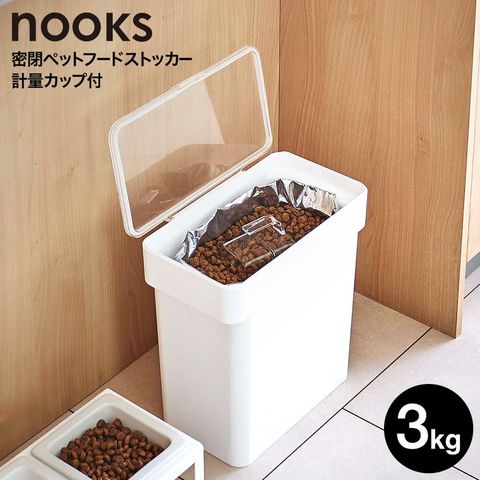nooks 密閉袋ごとペットフードストッカー ヌークス 3kg 計量カップ付 山崎実業 5613 5614 送料無料 / フードフード ストッカー ドッグフード 保存容器 ペット用品 猫 犬 ペット エサ入れ / ホワイト