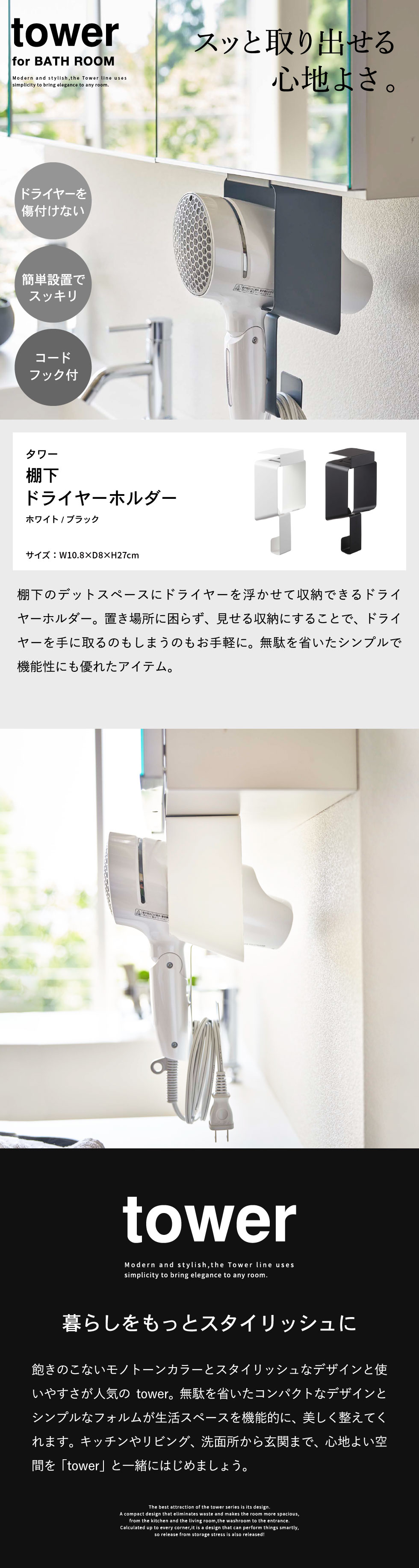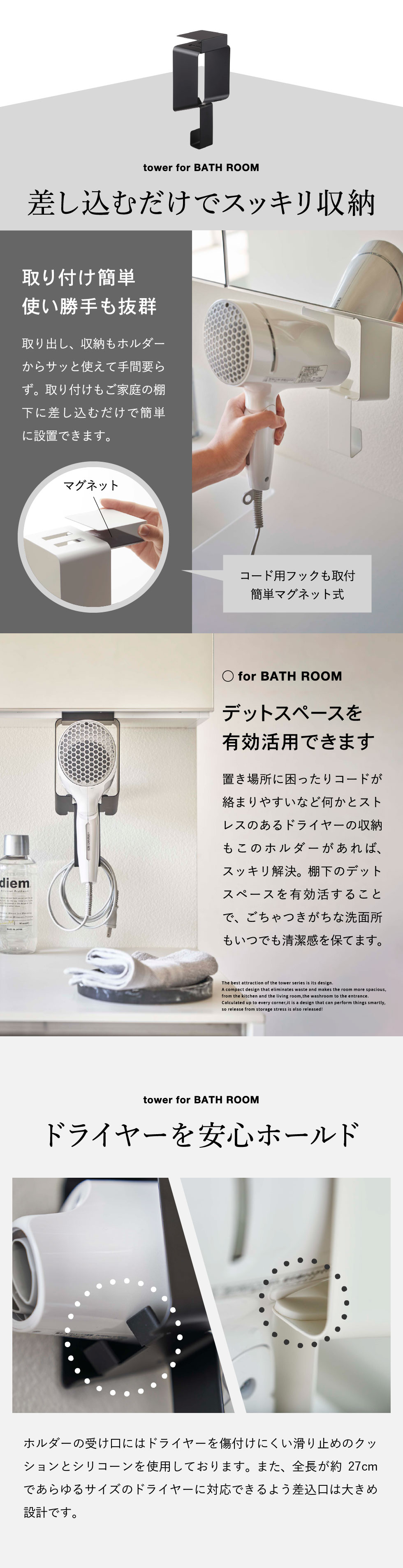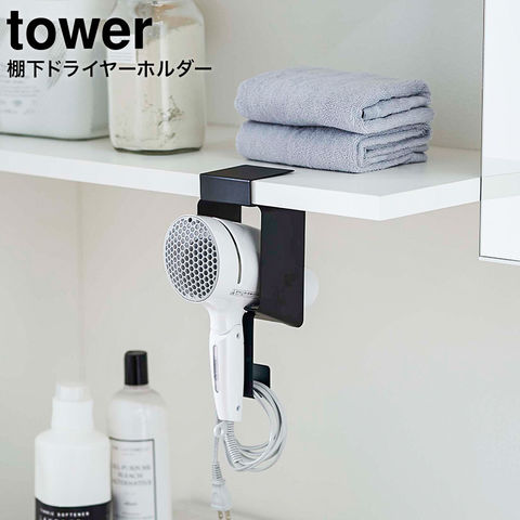 tower 棚下ドライヤーホルダー タワー 山崎実業 5659 5660 送料無料 / ドライヤー収納 洗面所 戸棚下 洗濯機 ラック ランドリーラック デッドスペース 収納 タワーシリーズ / ブラック