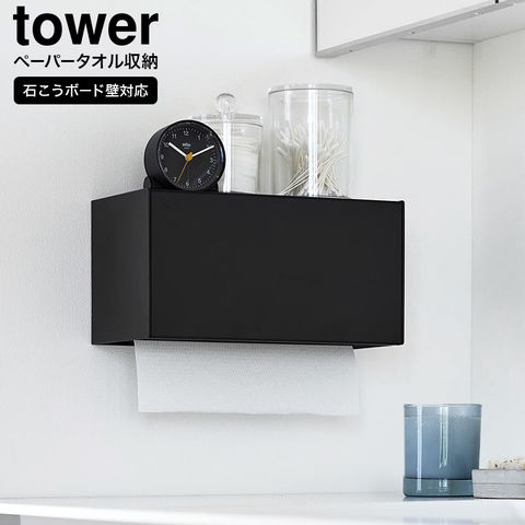 tower 石こうボード壁対応トレー付きペーパータオルディスペンサー タワー 山崎実業 送料無料 2003 2004 / ペーパーホルダー ペーパータオルホルダー 壁面収納 トレー付き yamazaki / ブラック