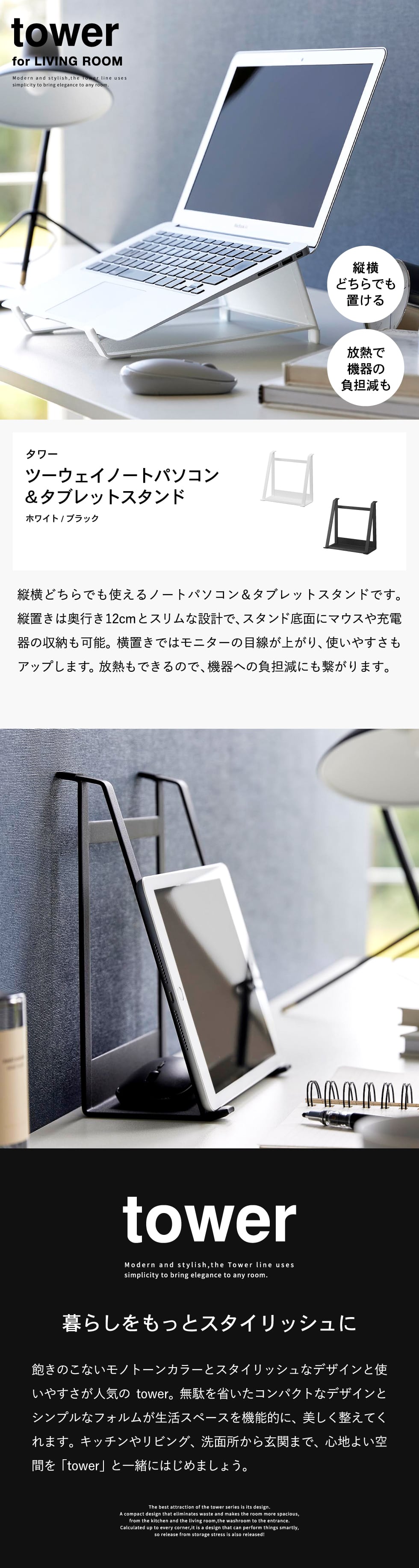 山崎実業 公式 tower ツーウェイノートパソコン&タブレットスタンド タワー 送料無料 1626 1627 ホワイト ブラック / ノートパソコンスタンド ノートPCスタンド 11~17インチ デスク 収納 タワーシリーズ yamazaki / ブラック