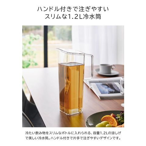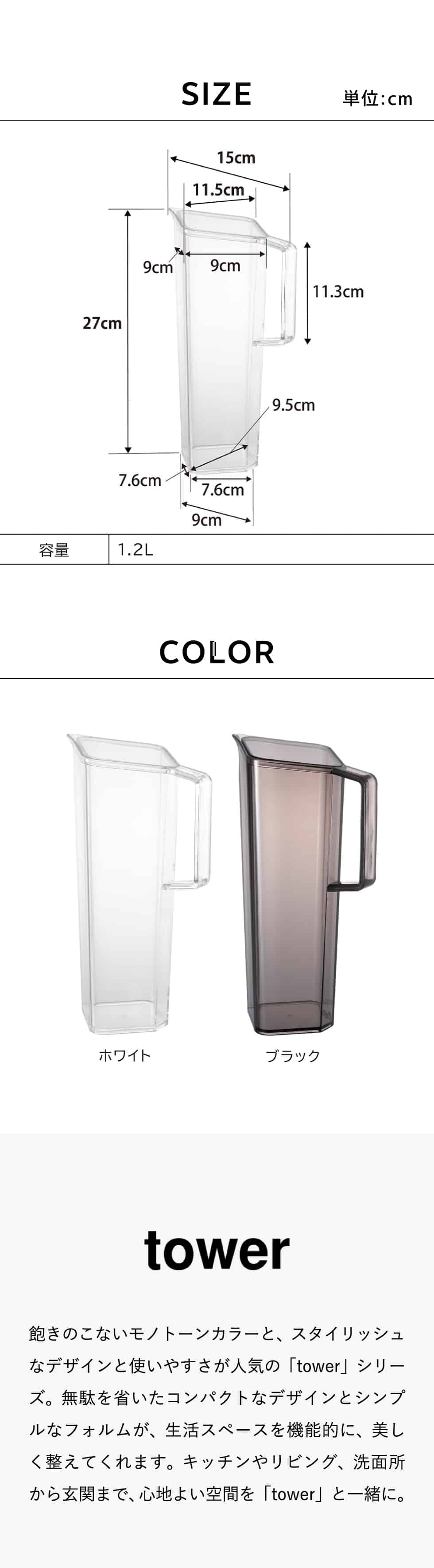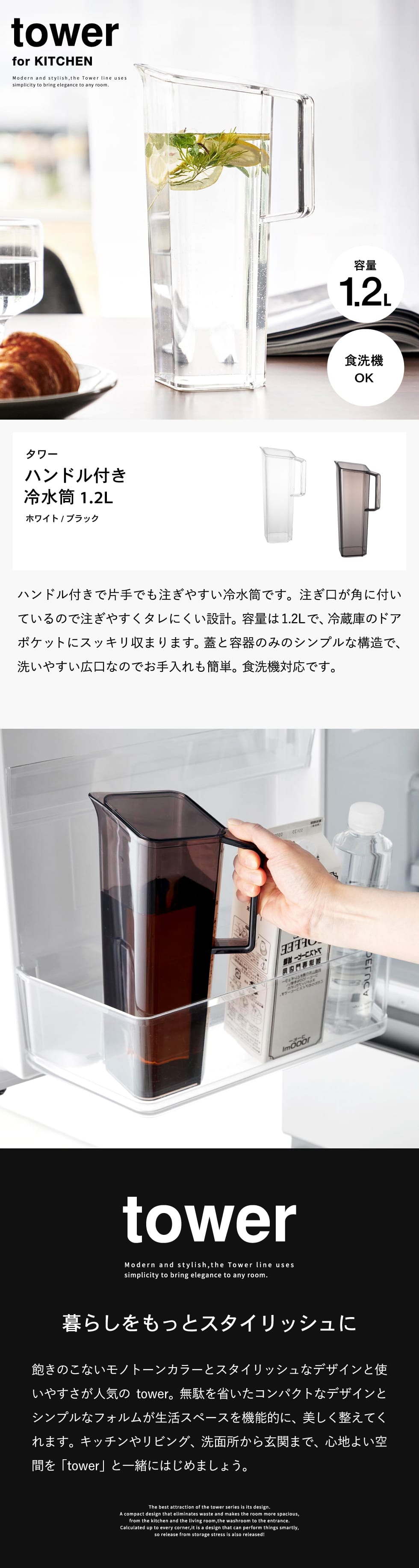 山崎実業 公式 tower ハンドル付き冷水筒 タワー 1.2L キッチン 1646 1647 / 冷蔵庫内 収納 冷水ポット 麦茶ポット 麦茶入れ ピッチャー カラフェ スリム タワーシリーズ yamazaki / ホワイト