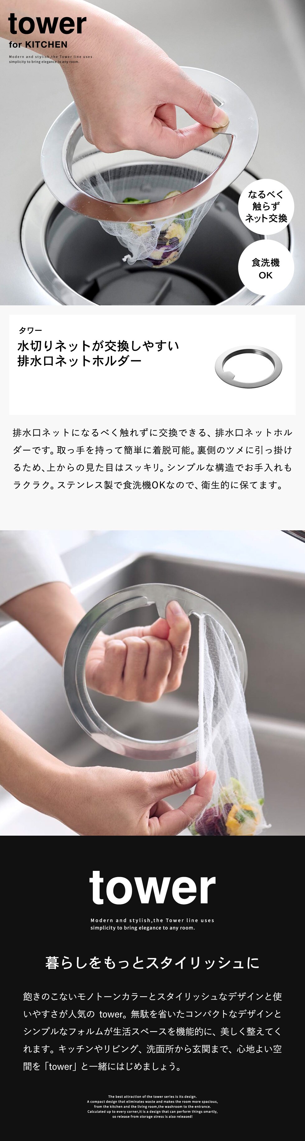 山崎実業 tower 水切りネットが交換しやすい排水口ネットホルダー タワー 公式 1694 / 水切りネット ホルダー ステンレス製 排水口ネット ポリ袋ホルダー ゴミ受け ゴミキャッチャー 生ごみ 生ゴミ入れ