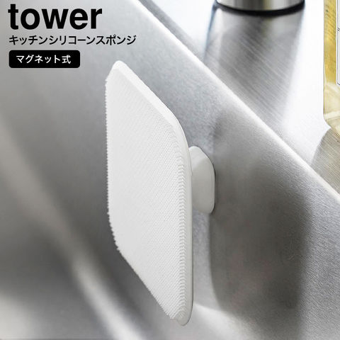 山崎実業 公式 tower マグネットキッチンシリコーンスポンジ タワー 1844 1845 / シリコーンブラシ シリコンブラシ 予洗い 食器洗い 調理器具 洗面台 水切り yamazaki タワーシリーズ / ホワイト