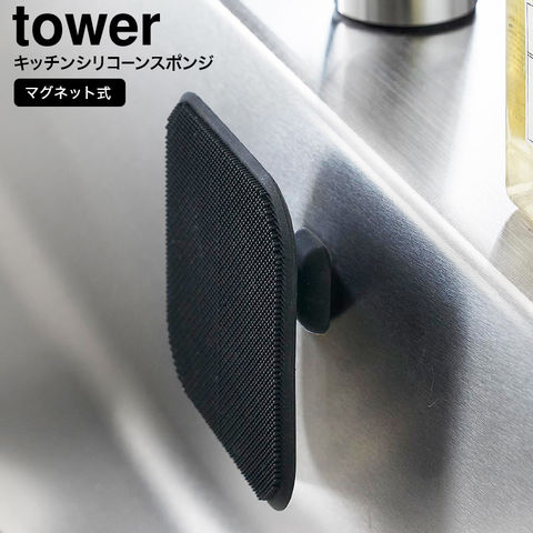 山崎実業 公式 tower マグネットキッチンシリコーンスポンジ タワー 1844 1845 / シリコーンブラシ シリコンブラシ 予洗い 食器洗い 調理器具 洗面台 水切り yamazaki タワーシリーズ / ブラック