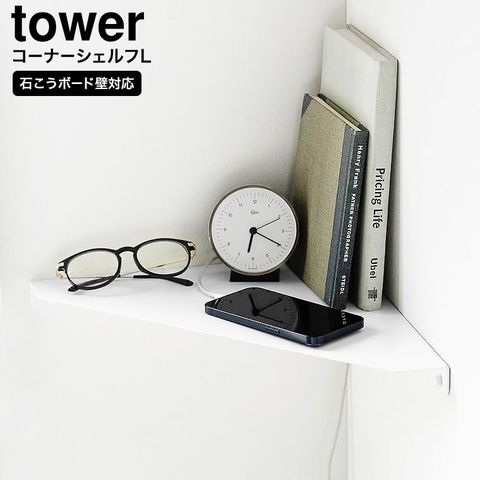 山崎実業 tower ウォールコーナーシェルフ タワー L 石こうボード壁対応 公式 1401 1402 送料無料 棚 ウォールシェルフ リビング トイレ 寝室 ベッドサイド 玄関 スマホ スマートフォン 充電 / ホワイト