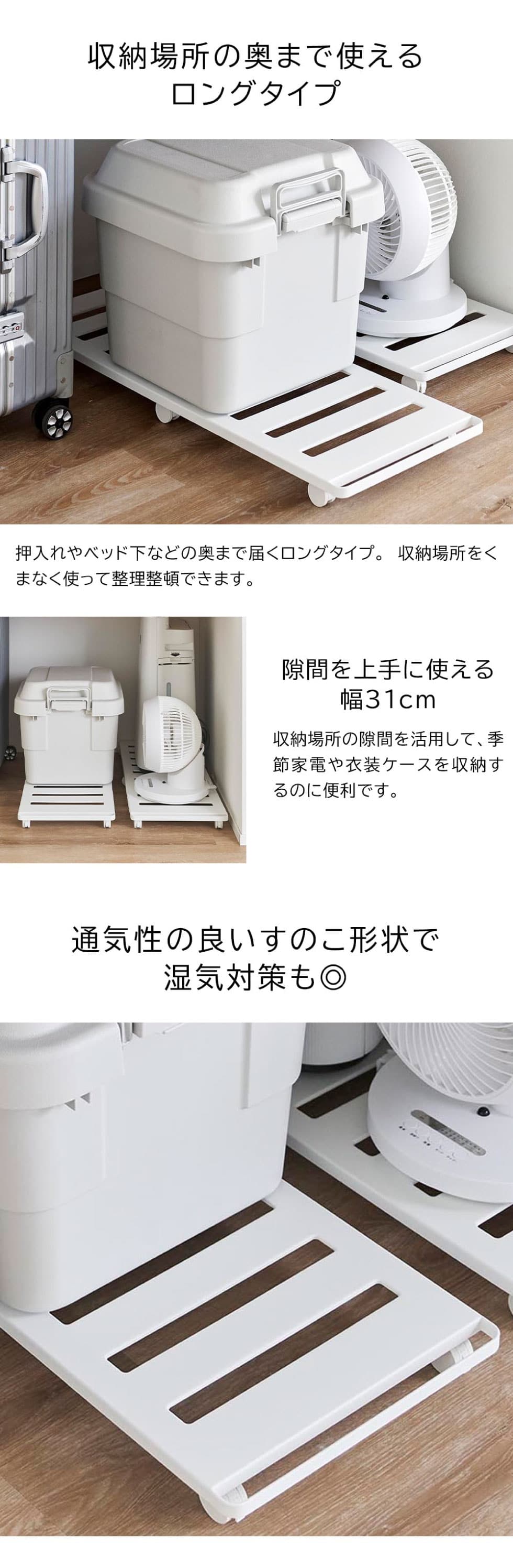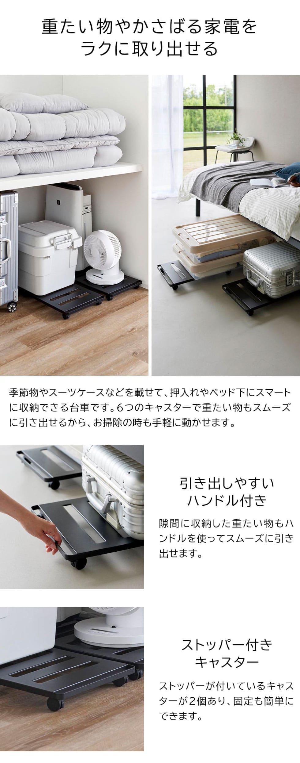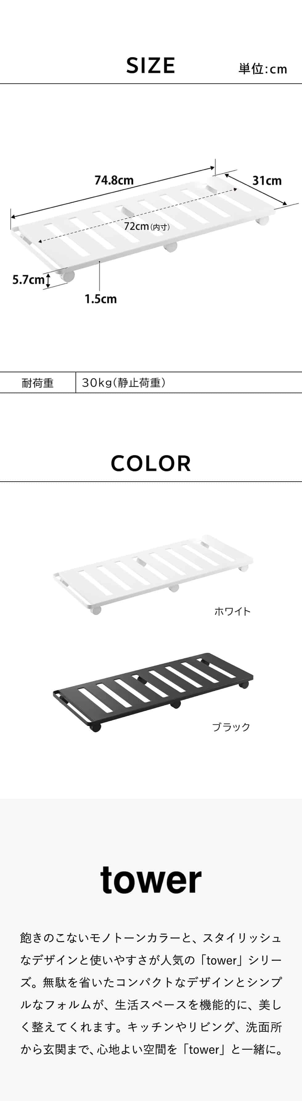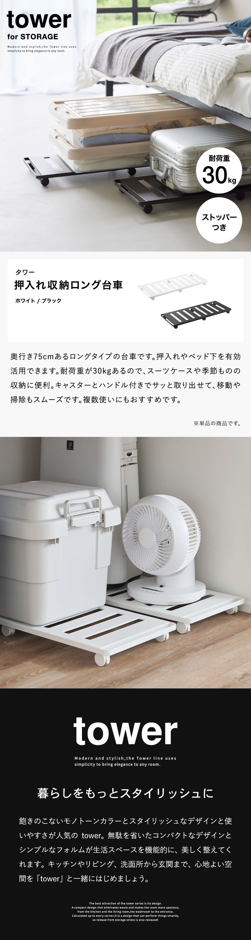 山崎実業 tower 押入れ収納ロング台車 タワー 公式 1417 1418 ホワイト ブラック 送料無料 / 耐荷重30kg キャスター付き ワゴン すのこ 押し入れ クローゼット ベッド下収納 ハンドル付き ストッパー付き / ホワイト