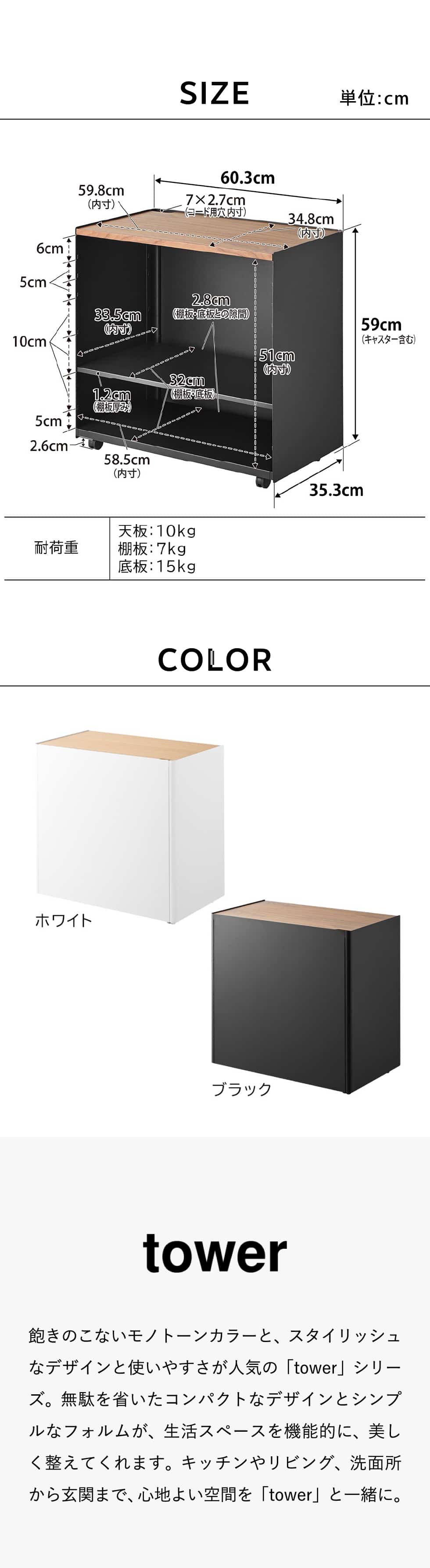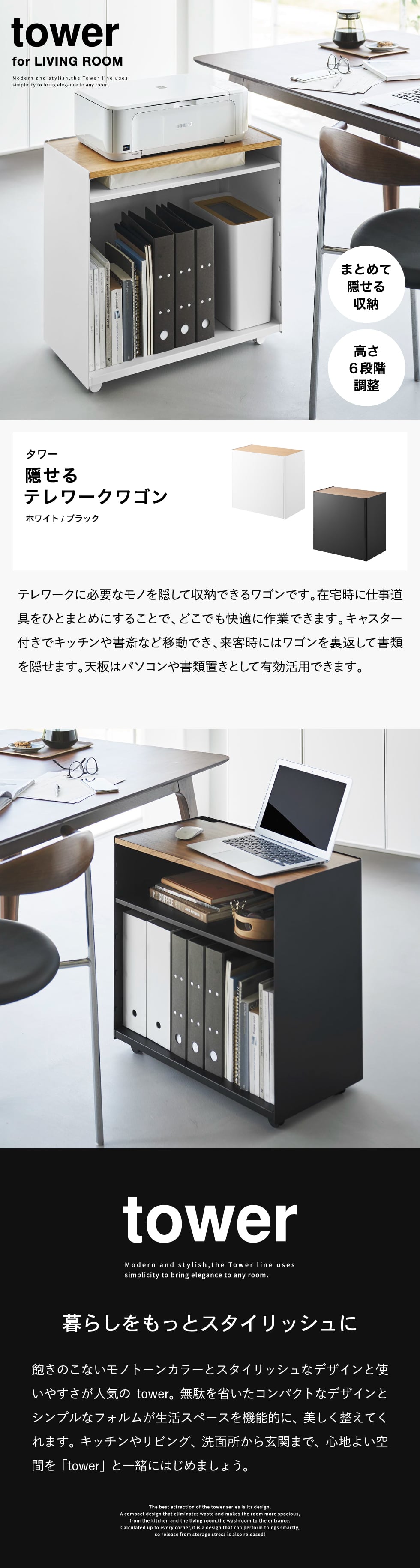 山崎実業 tower 隠せるテレワークワゴン タワー 公式 1424 1425 送料無料 / デスク ワゴン リモートワーク キッチンワゴン 収納ワゴン リビング ランドリー 洗濯用品 キャスター付き / ホワイト