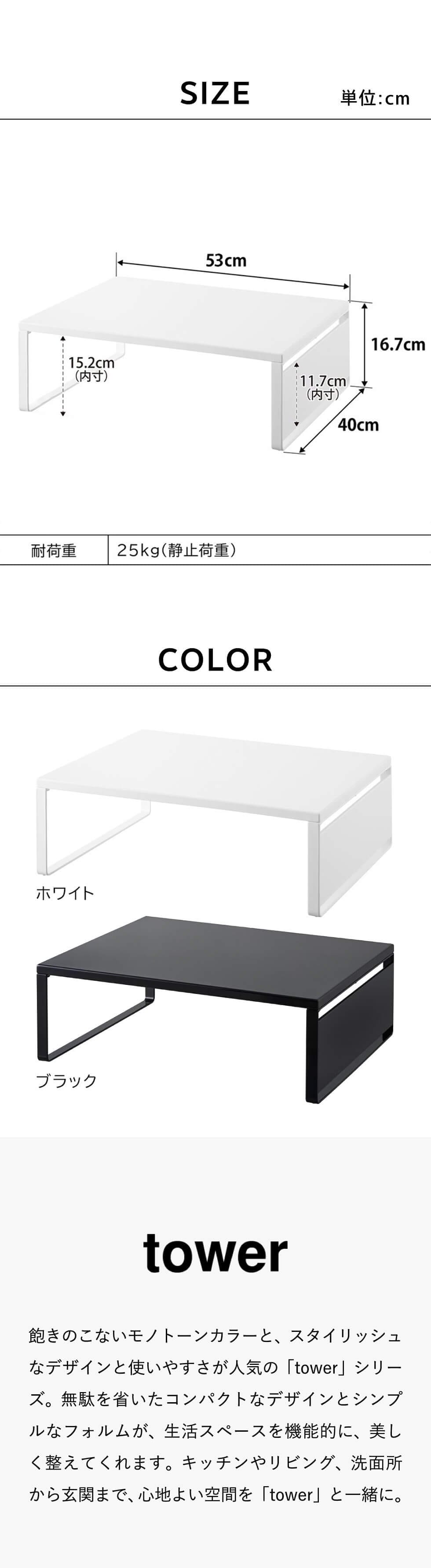 山崎実業 tower オーブンレンジラック タワー 公式 1442 1443 送料無料 / ホットプレート カセットコンロ 収納 家電ラック 電子レンジ トースター キッチン家電 レンジ下 隙間収納 タワーシリーズ / ホワイト