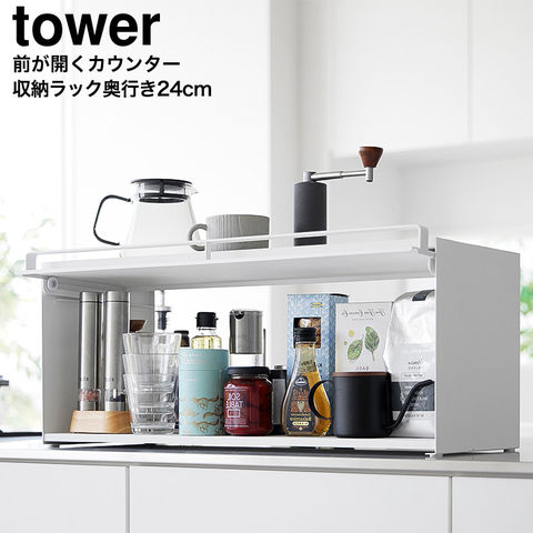 山崎実業 tower 前が開くキッチンカウンター上収納ラック タワー D24 公式 1454 1455 送料無料 / キッチンカウンター 収納 調味料収納 家電ラック 奥行き26.7cm タワーシリーズ JGS / ホワイト