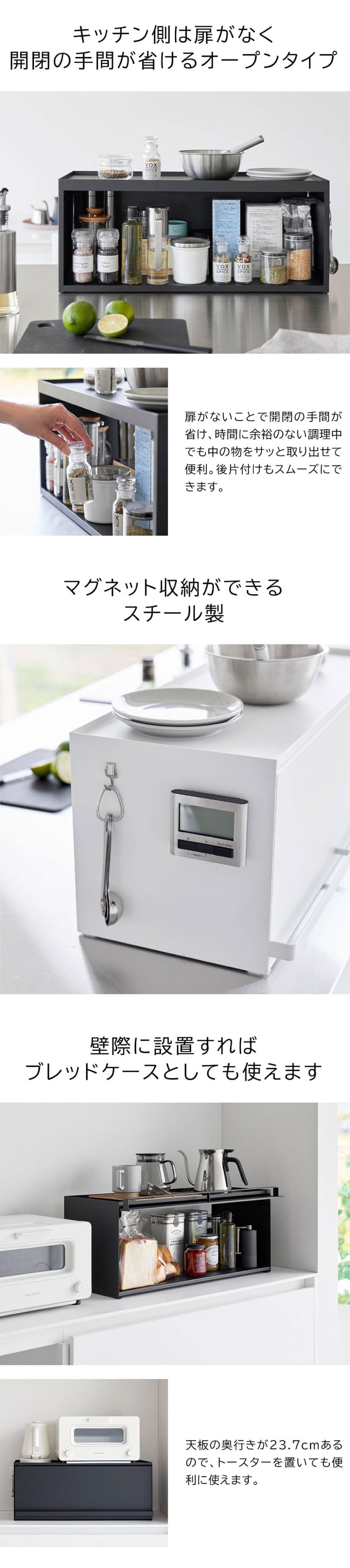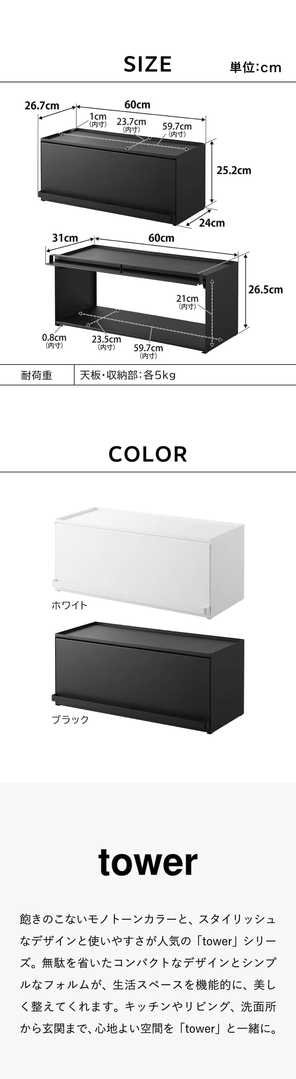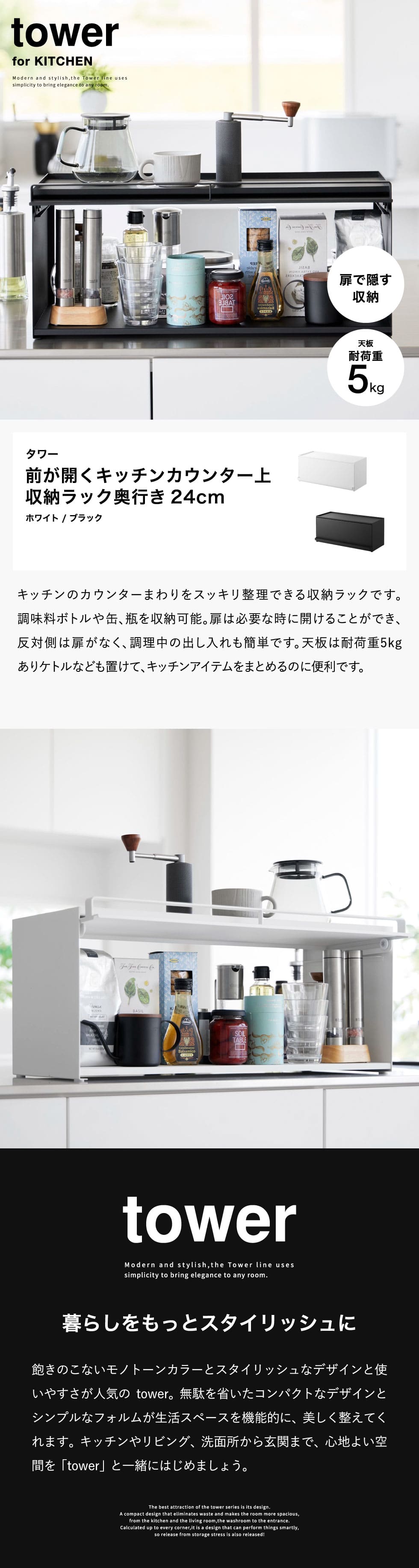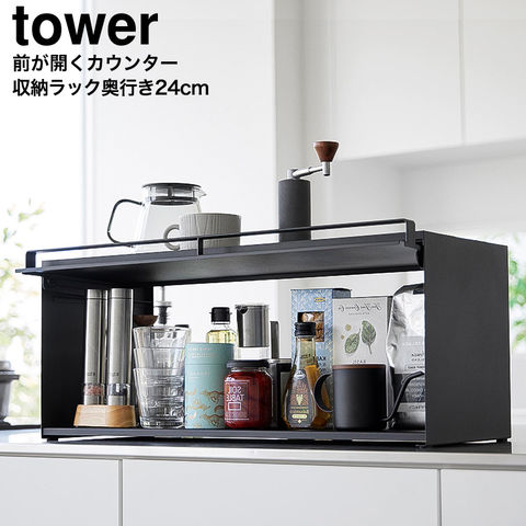 山崎実業 tower 前が開くキッチンカウンター上収納ラック タワー D24 公式 1454 1455 送料無料 / キッチンカウンター 収納 調味料収納 家電ラック 奥行き26.7cm タワーシリーズ JGS / ブラック