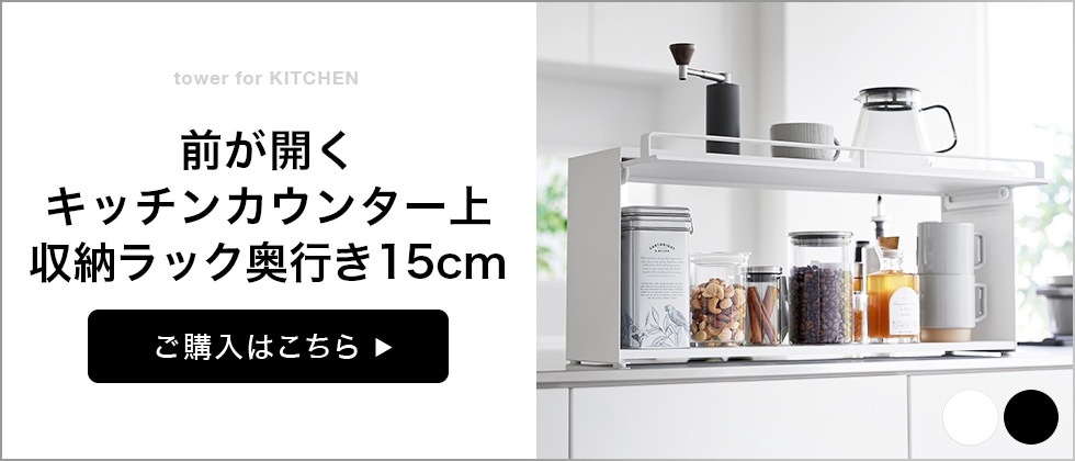 | 前が開くキッチンカウンター上収納ラック タワー D24 |
