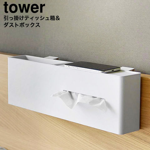 山崎実業 tower 引っ掛けティッシュケース&ダストボックス タワー 公式 1458 1459 送料無料 / ゴミ箱付き ティッシュ入れ ティッシュボックス 小物入れ 寝室 ベットサイド タワーシリーズ yamazaki JGS / ホワイト