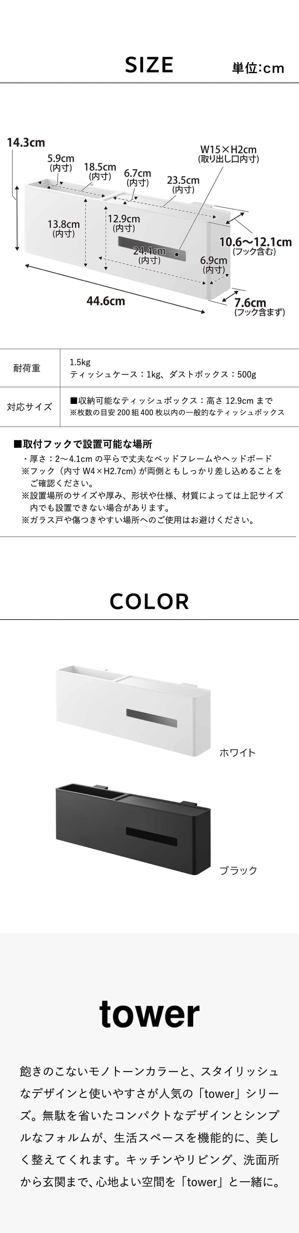 山崎実業 tower 引っ掛けティッシュケース&ダストボックス タワー 公式 1458 1459 送料無料 / ゴミ箱付き ティッシュ入れ ティッシュボックス 小物入れ 寝室 ベットサイド タワーシリーズ yamazaki JGS / ブラック
