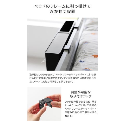 ■フックで設置可能な場所 厚さ2~4.1cm以内の、平らで丈夫なベッドフレームやヘッドボード |