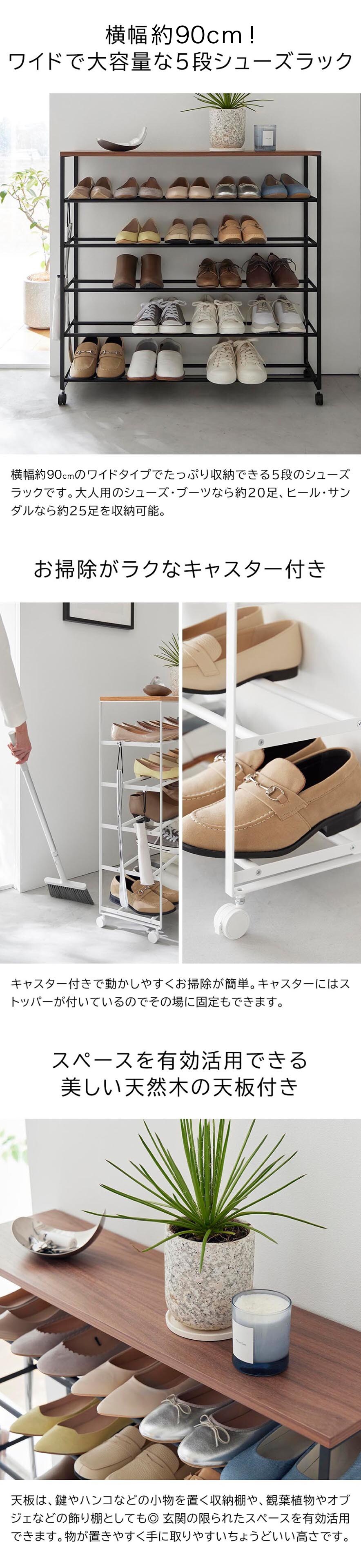 | 天板付きシューズラック タワー 5段 キャスター付 W90 |