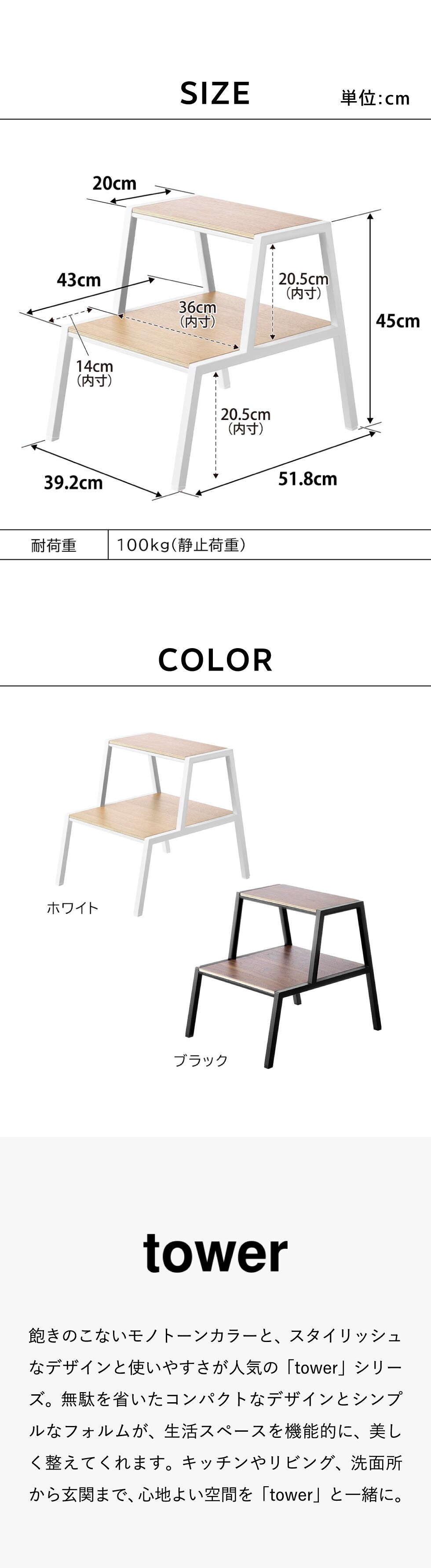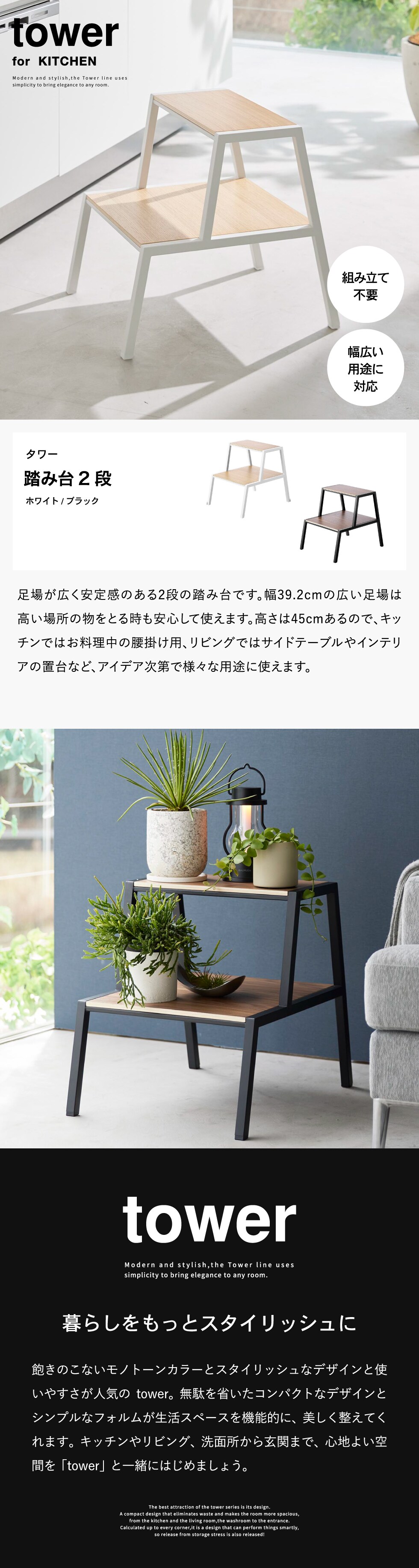 山崎実業 tower 踏み台 タワー 2段 公式 1467 1468 送料無料 / ステップ台 椅子 イス いす サイドテーブル フラワースタンド 観葉植物 飾り棚 リビング キッチン yamazaki タワーシリーズ / ブラック