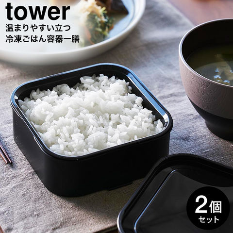 山崎実業 tower 温まりやすい立つ冷凍ごはん容器 タワー 一膳 2個組 公式 1471 1472 / 冷蔵庫内 収納 容量150g 食洗機対応 電子レンジ対応 ごはん保存容器 冷凍ご飯容器 冷凍ご飯ケース JGS / ブラック