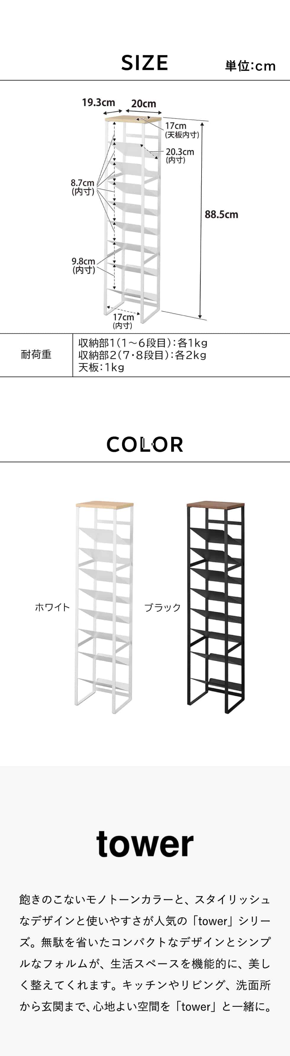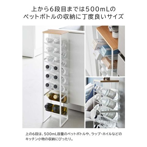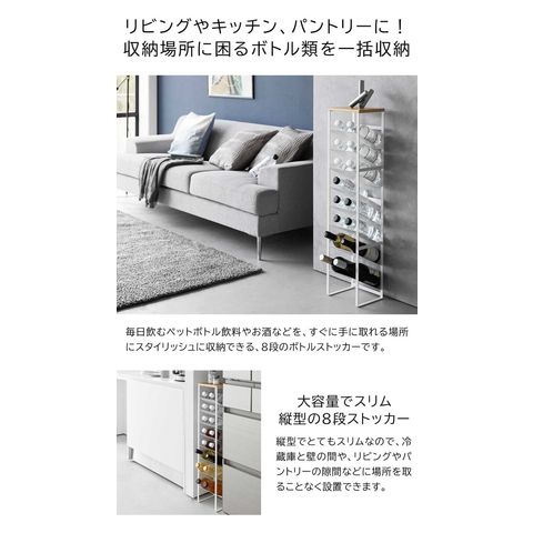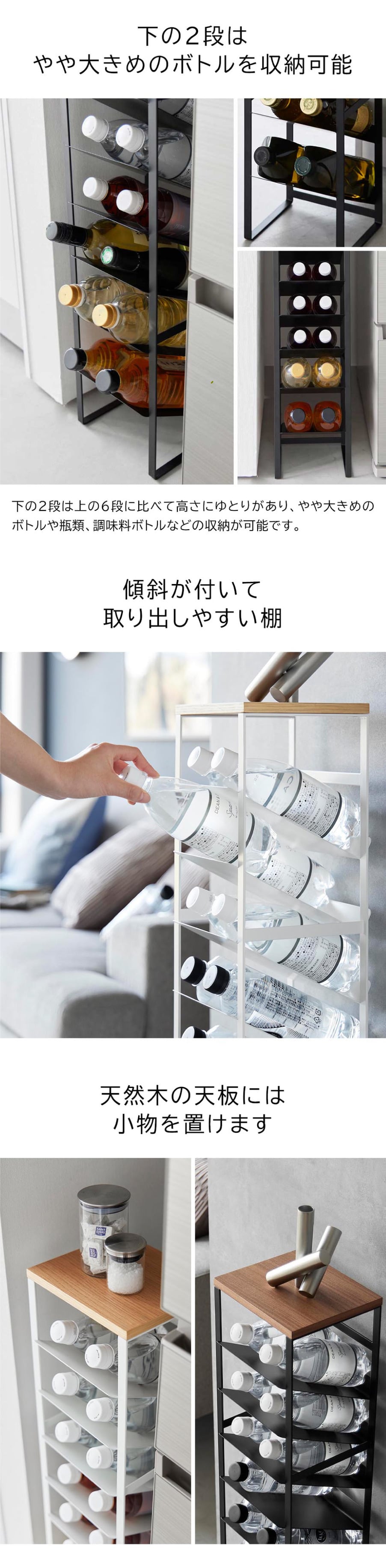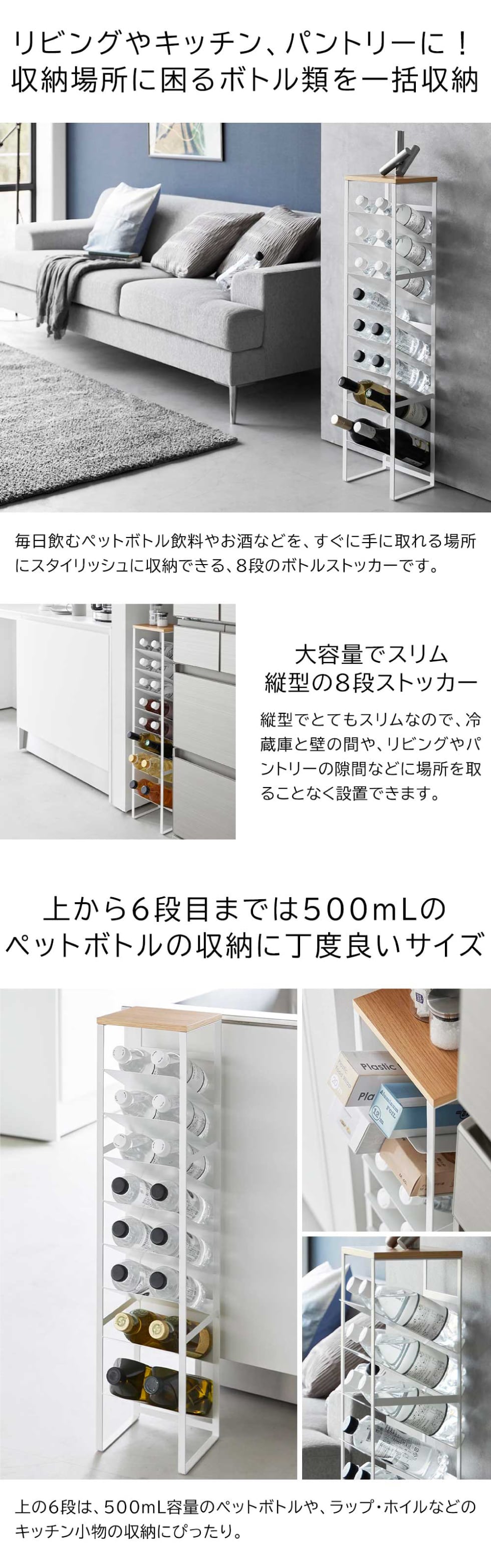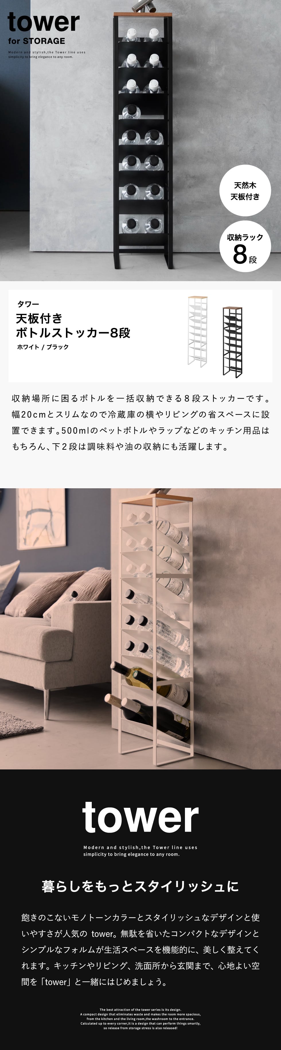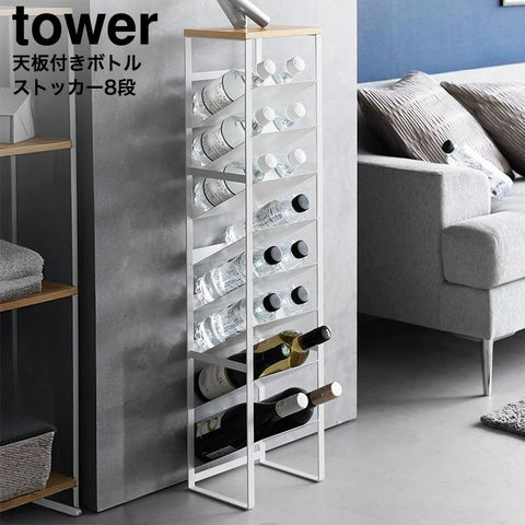 山崎実業 tower 天板付きボトルストッカー タワー 8段 公式 1491 1492 送料無料 / ボトルラック ワゴン ペットボトル ワイン キッチンリビング 収納 隙間収納 縦型 yamazaki タワーシリーズ JGS / ホワイト