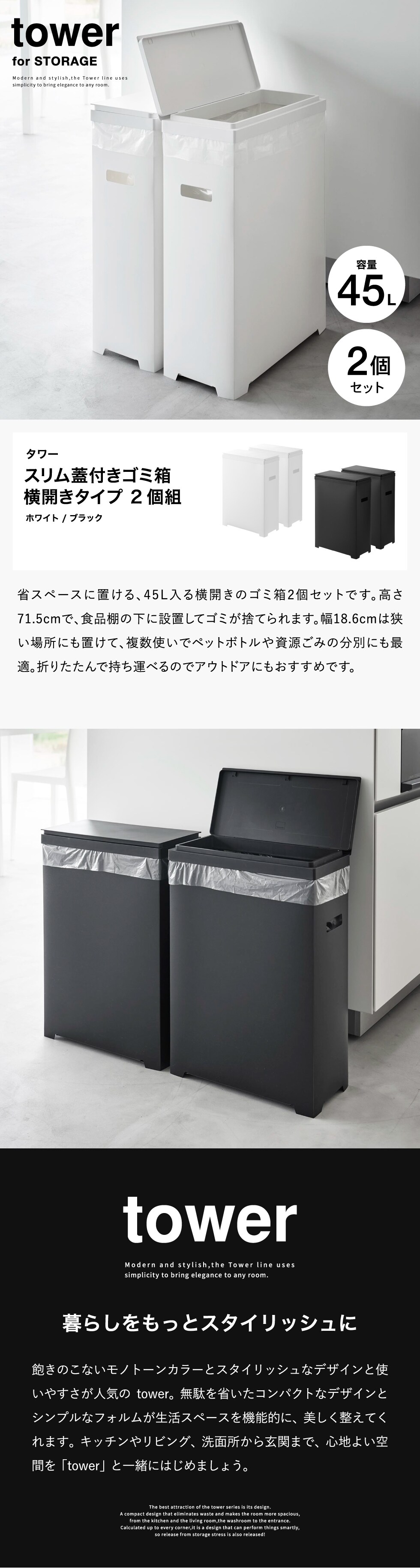 | スリム蓋付きゴミ箱 タワー 横開きタイプ 2個組 |