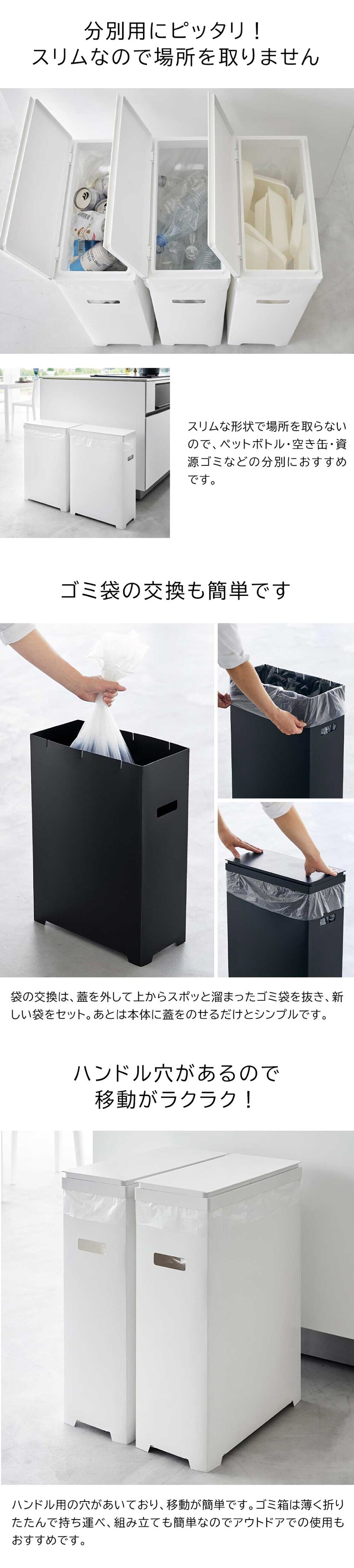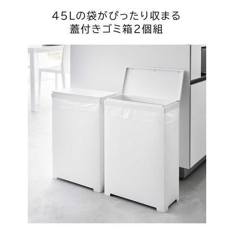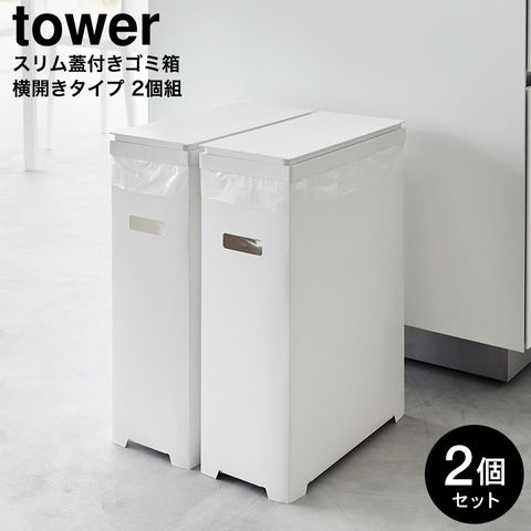 山崎実業 tower スリム蓋付きゴミ箱 タワー 横開きタイプ 2個組 公式 1526 1527送料無料 / 35L 分別用 資源ごみ 資源ゴミ ペットボトル プラスチック ダストボックス タワーシリーズ yamazaki / ホワイト