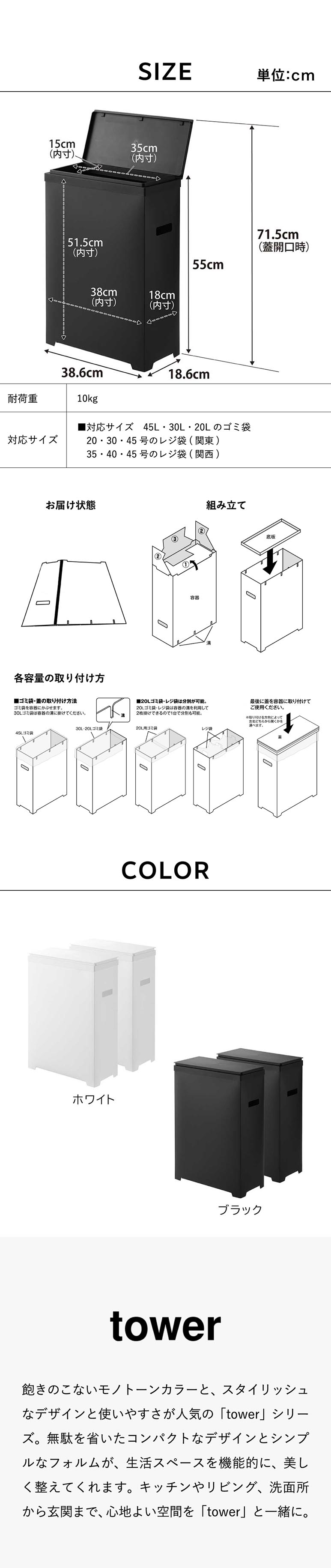 対応サイズ 45L・30L・20Lのゴミ袋 20・30・45号のレジ袋(関東) 35・40・45号のレジ袋(関西) |