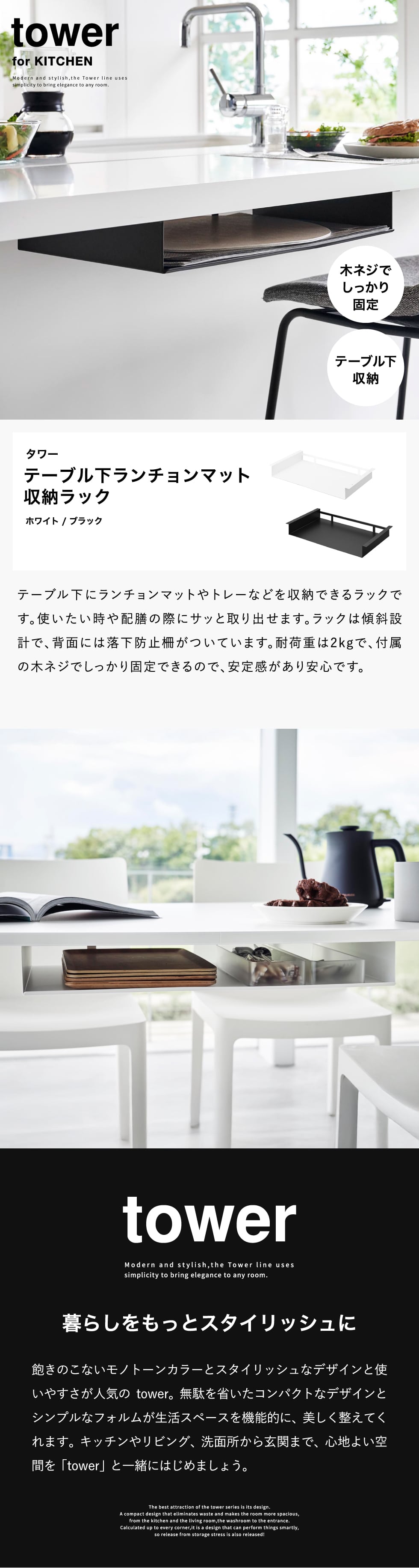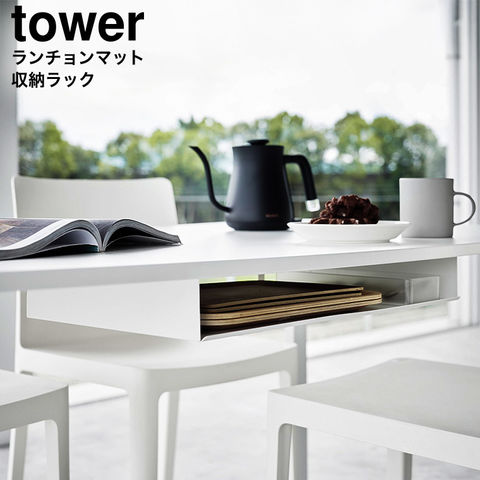 山崎実業 tower テーブル下ランチョンマット収納ラック タワー 公式 1873 1874 送料無料 / トレー カトラリー 食卓テーブル デスク ダイニングテーブル 隙間収納 yamazaki タワーシリーズ JGS / ホワイト