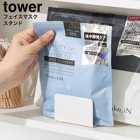 山崎実業 tower フェイスマスクスタンド タワー 公式 1949 1950 / 洗面台 洗面所 収納 シートマスク フェイスパック 化粧品 スキンケア 洗面鏡中 引き出し 整理 隙間収納 JGS / ホワイト