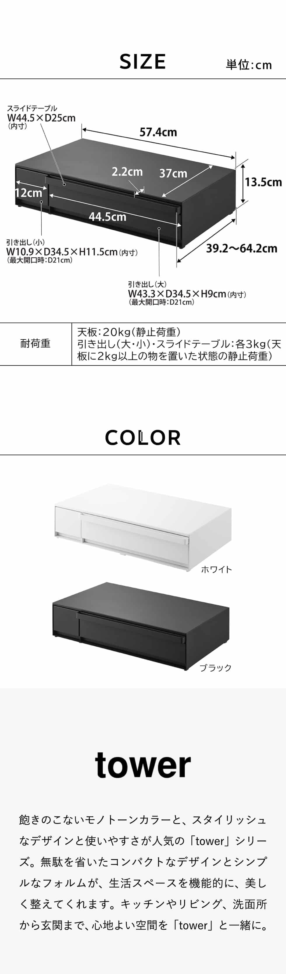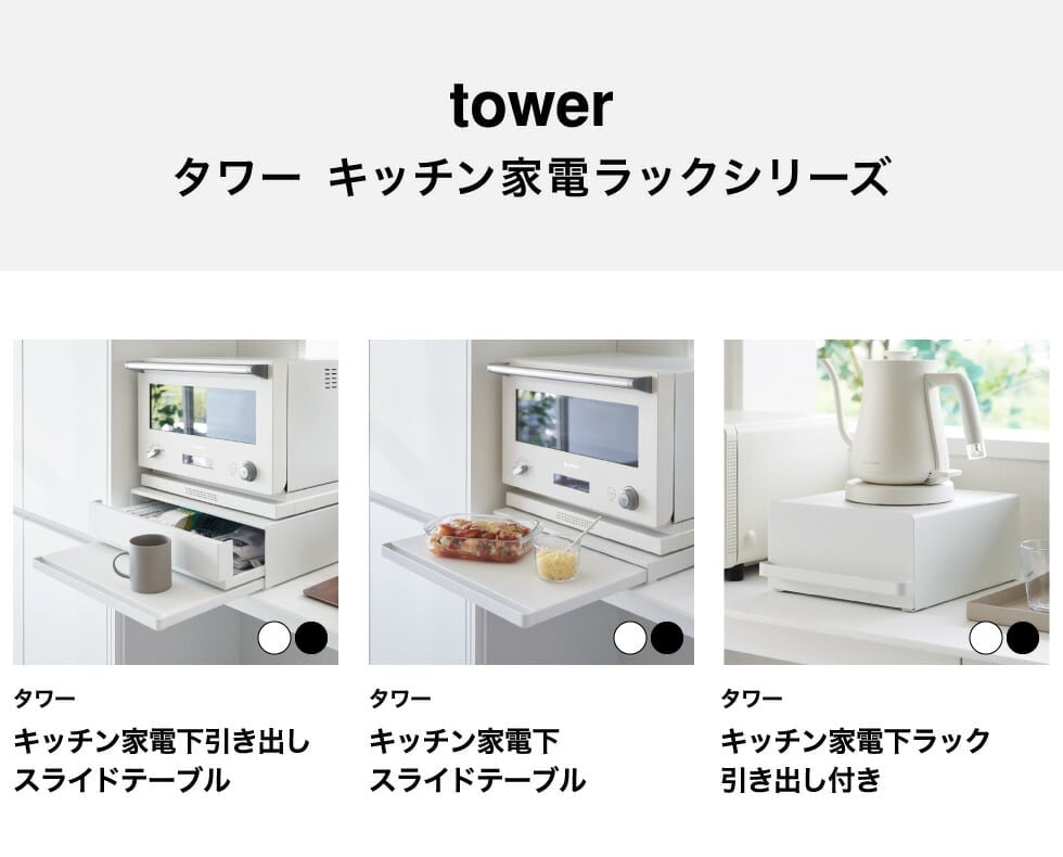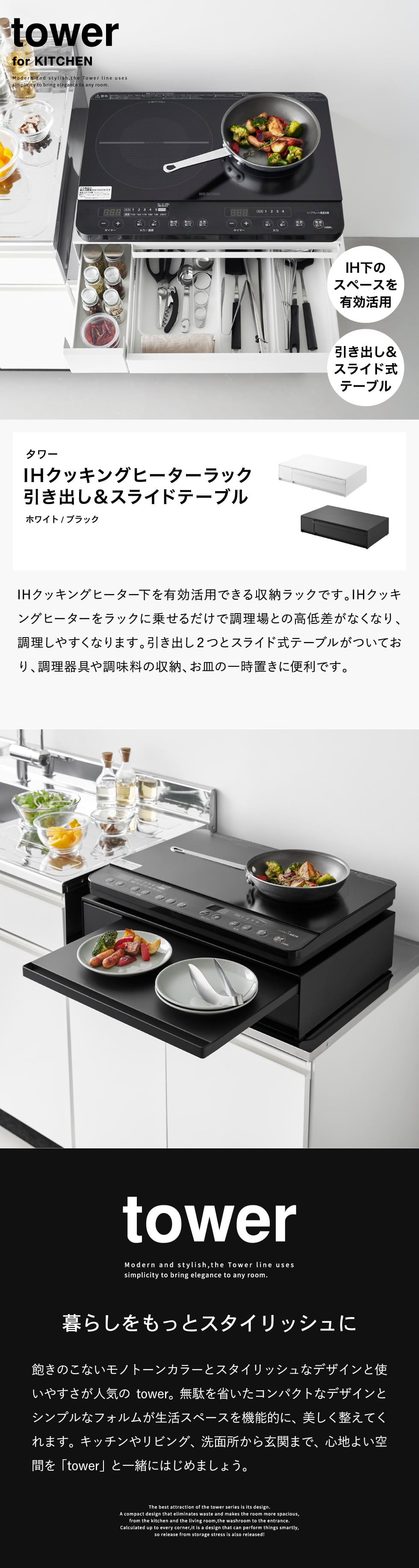 山崎実業 tower IHクッキングヒーターラック タワー 引き出し&スライドテーブル 公式 キッチン 1293 1294 送料無料 / IH調理器 置き台 卓上 電磁調理器 スタンド 電子レンジ / ホワイト