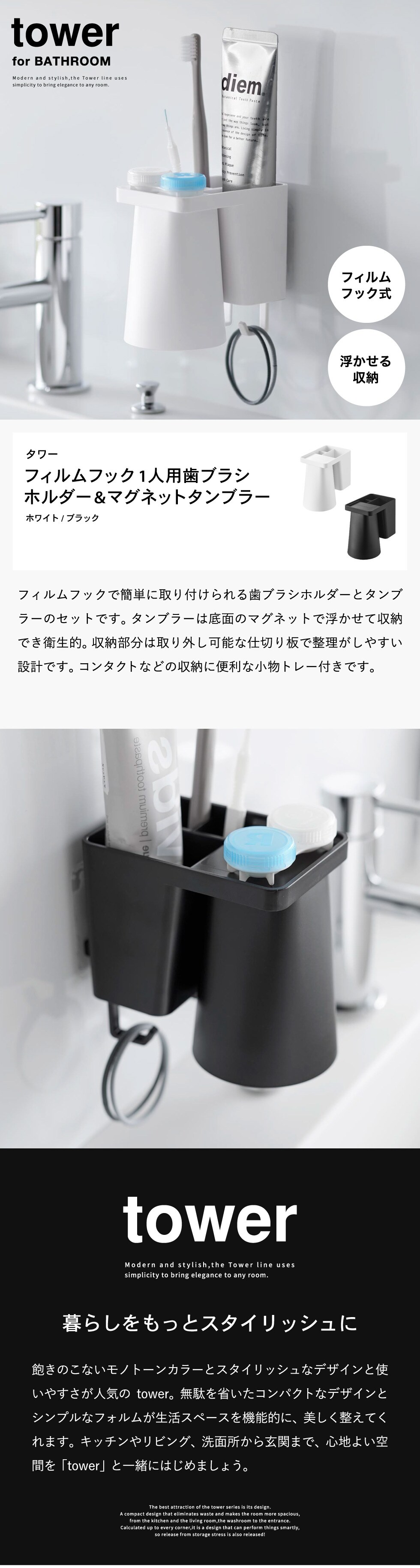 | フィルムフック1人用歯ブラシホルダー&マグネットタンブラー タワー |