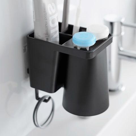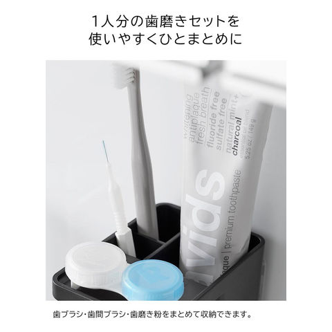 山崎実業 tower フィルムフック1人用歯ブラシホルダー&マグネットタンブラー タワー 公式 1295 1296 / 歯磨き粉 歯みがき ハミガキ コップ 歯ブラシ スタンド 洗面台 収納 立て 置き チューブ / ブラック