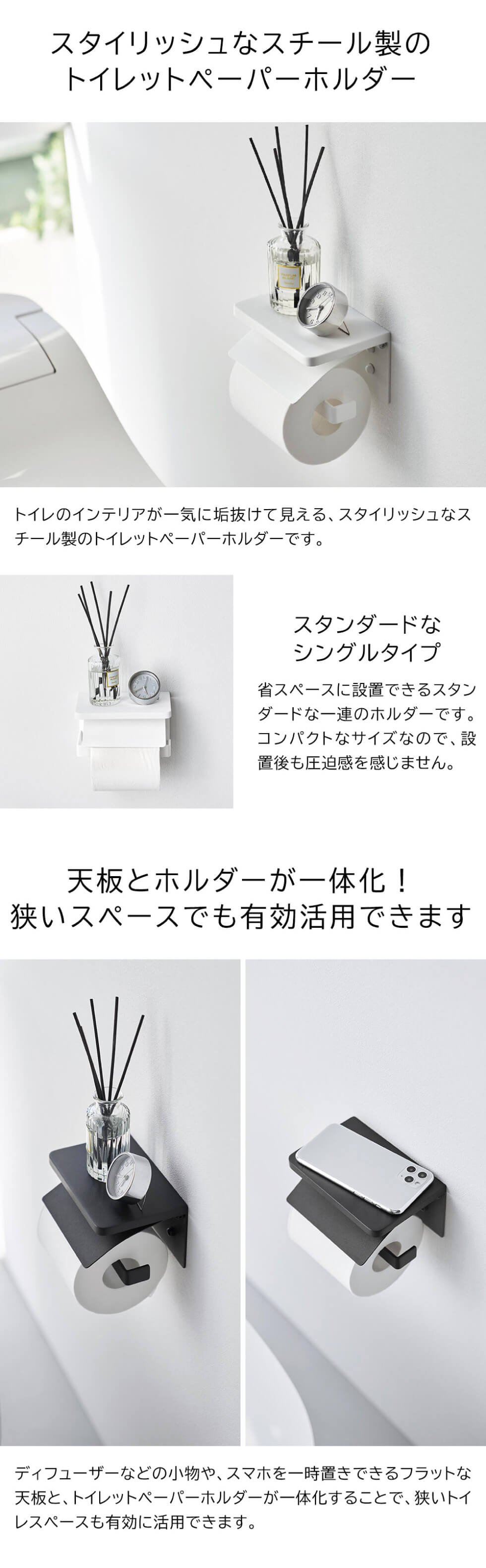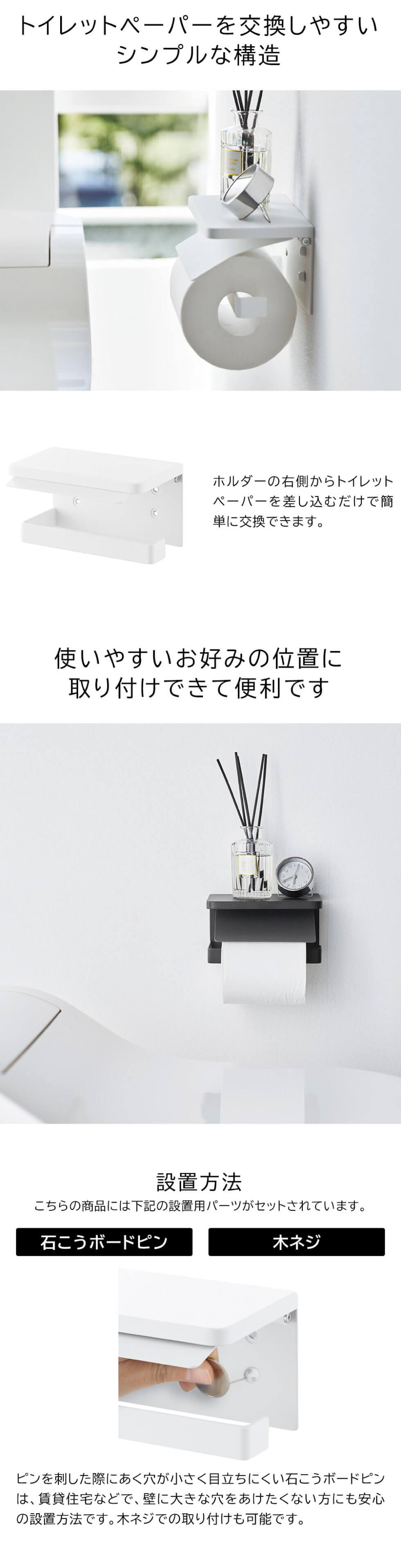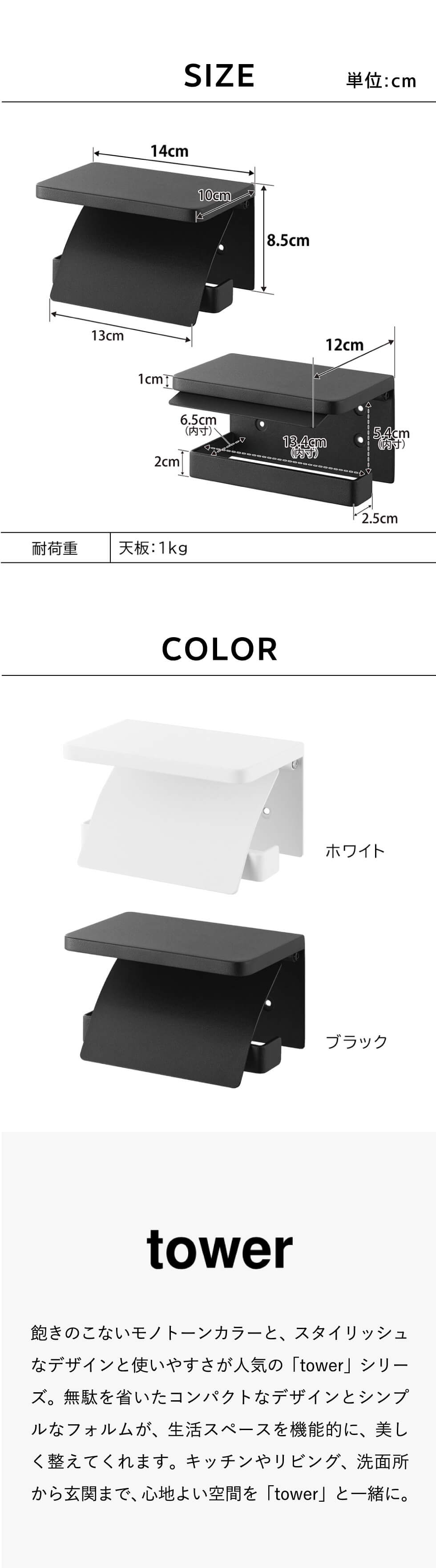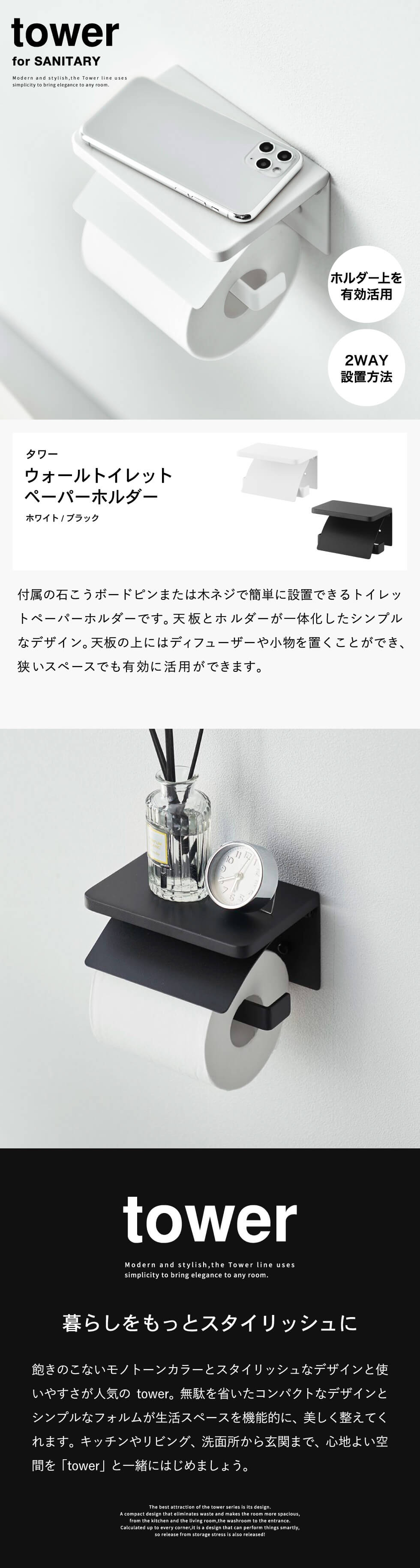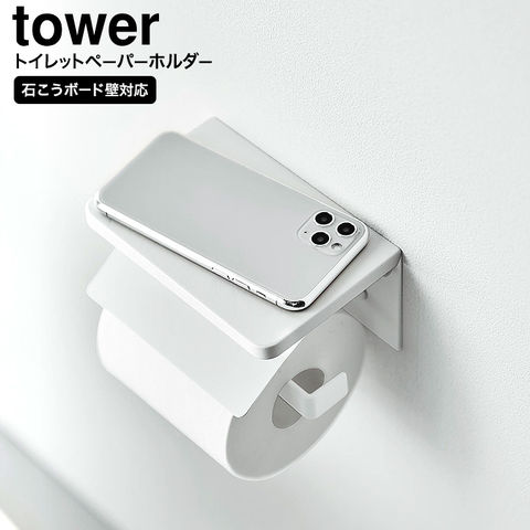 山崎実業 tower ウォールトイレットペーパーホルダー タワー 石こうボード壁対応 公式 1297 1298 送料無料 / 1連 シングル 収納 飾り棚 棚付き カバー トイレ用品 おしゃれ タワーシリーズ / ホワイト