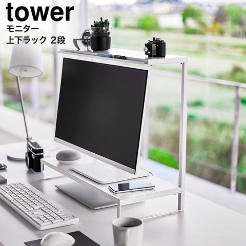 山崎実業 tower モニター上下ラック タワー 2段 公式 1302 1303 送料無料 / モニター台 卓上 ディスプレイ台 モニタースタンド デスク 収納 パソコンラック タワーシリーズ JGS / ホワイト