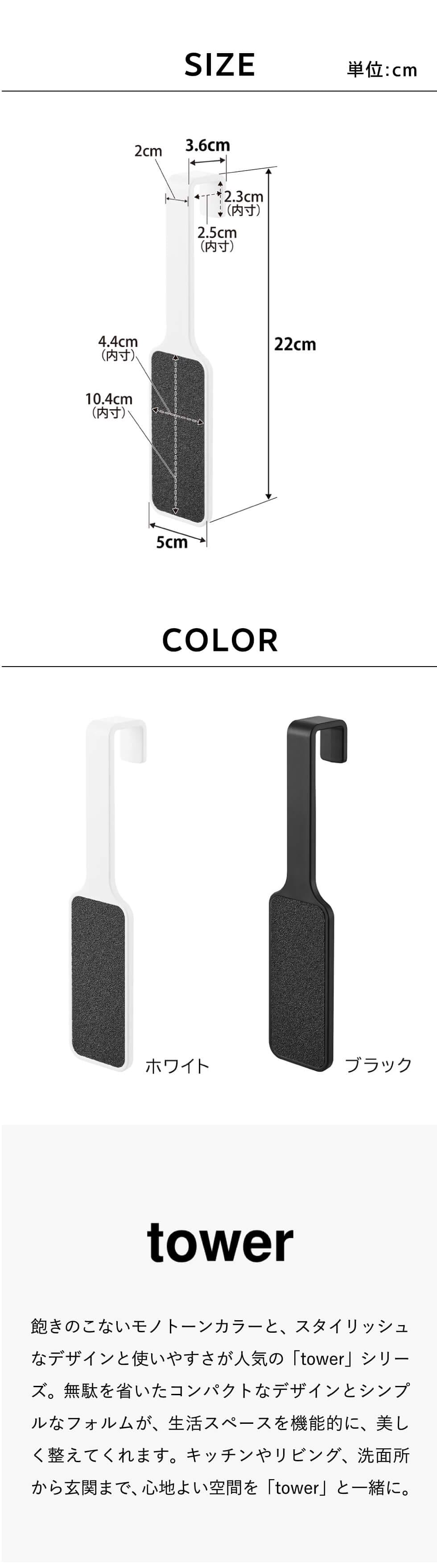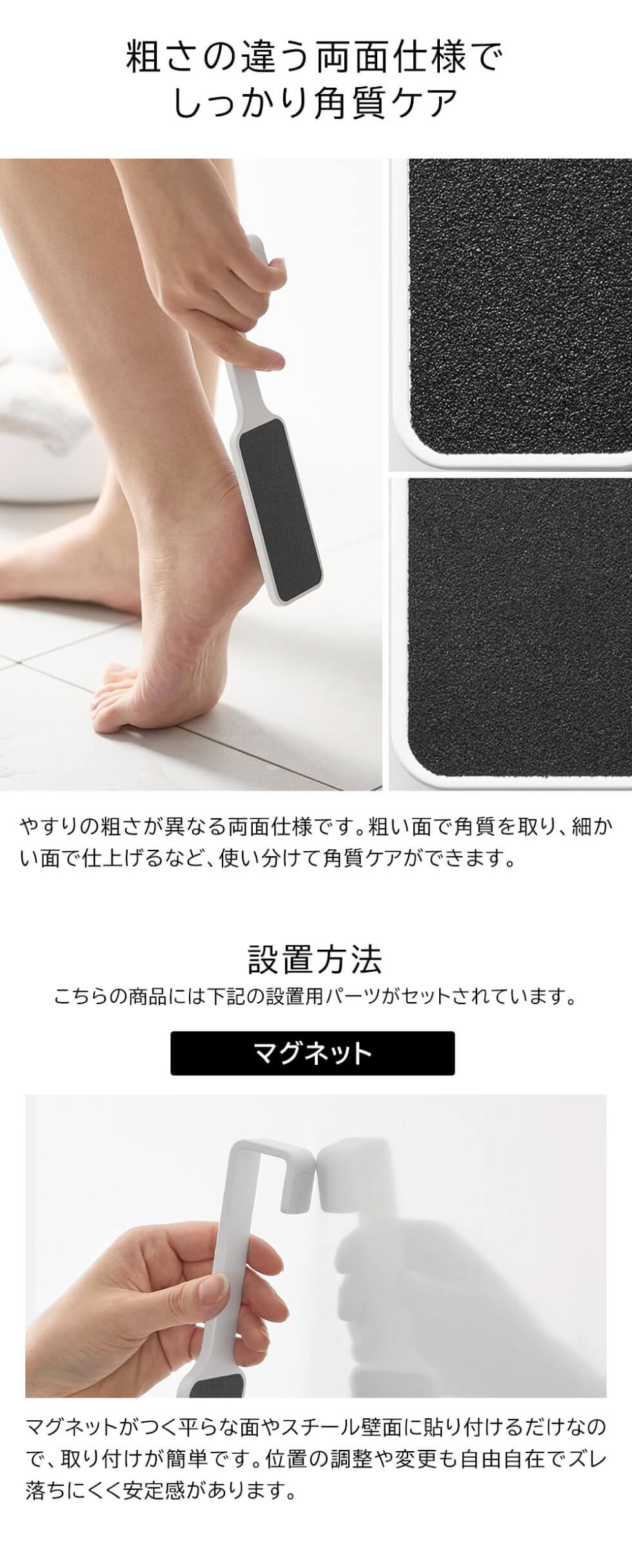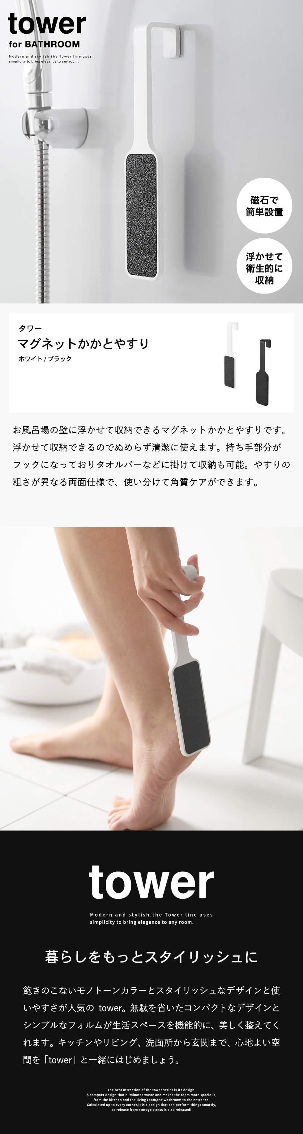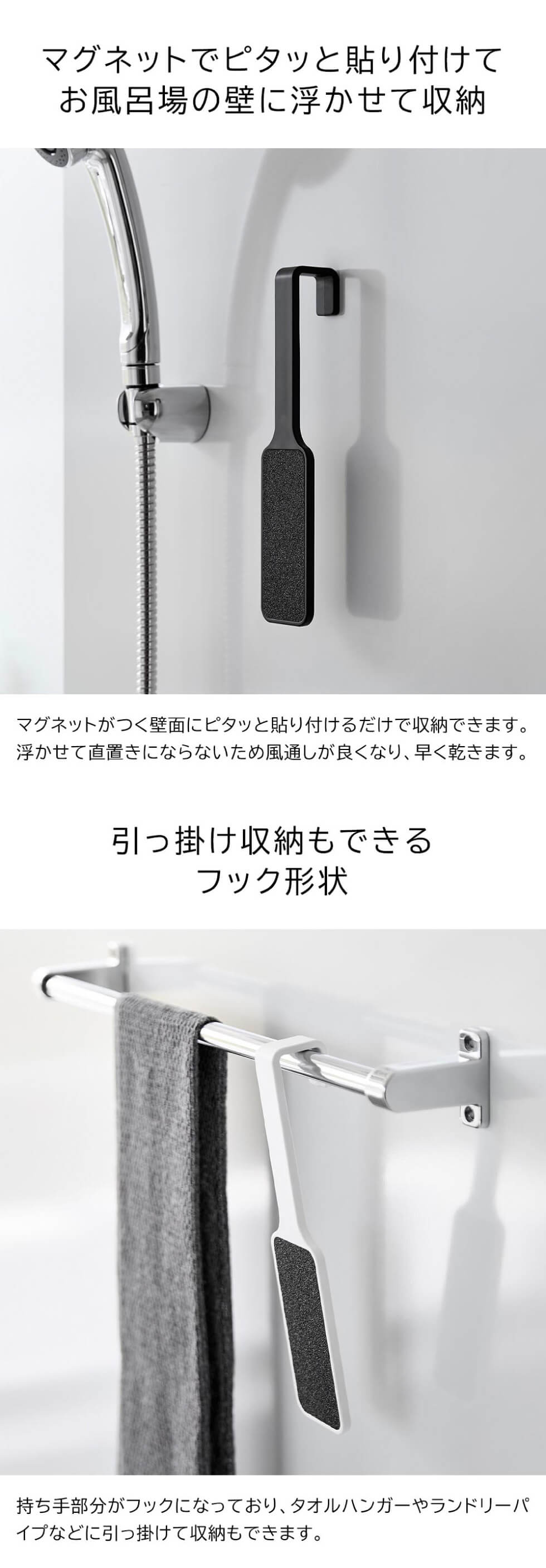 山崎実業 tower マグネットかかとやすり タワー 公式 1306 1307 / フット かかと 角質 ケア 角質除去 フック付き バスルーム お風呂 浮かせる収納 タワーシリーズ yamazaki / ホワイト