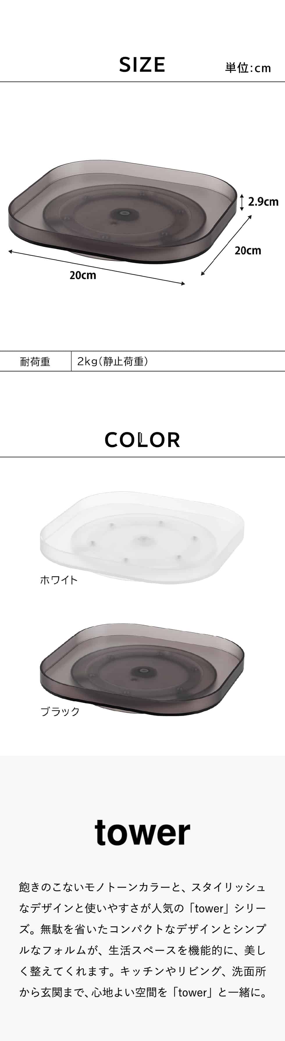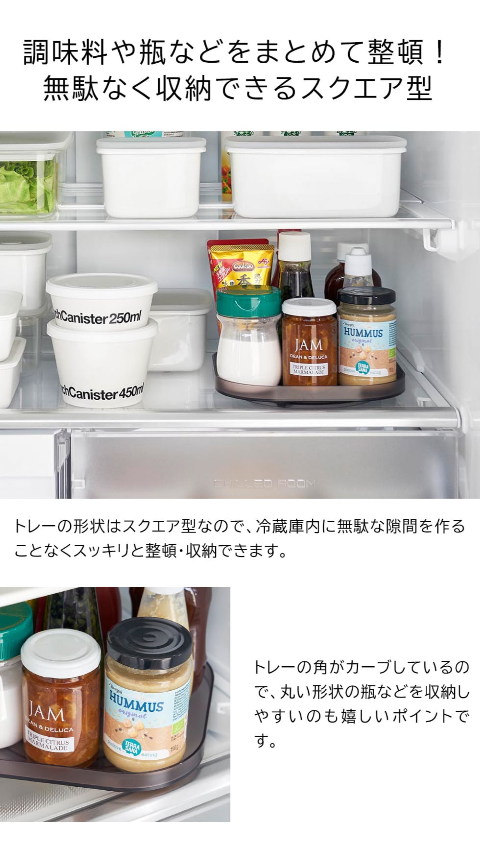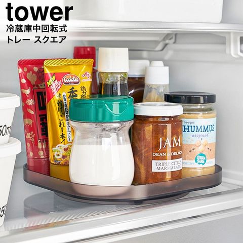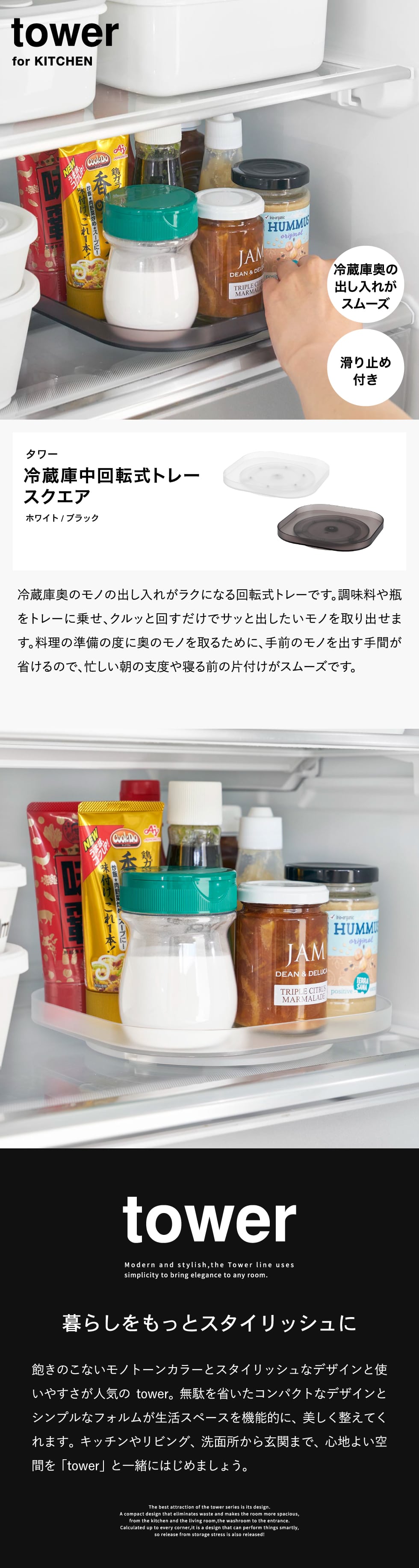 山崎実業 tower 冷蔵庫中回転式トレー タワー スクエア キッチン 公式 1322 1323 / 冷蔵庫内 調味料収納 トレー 回転 調味料ラック 冷蔵庫収納 タワーシリーズ yamazaki JGS / ブラック