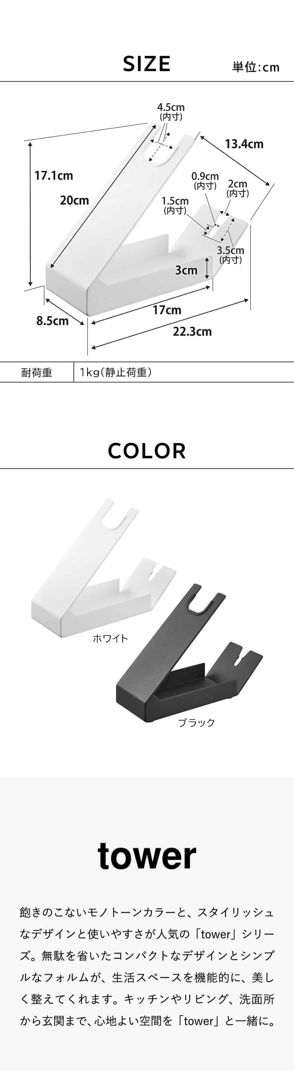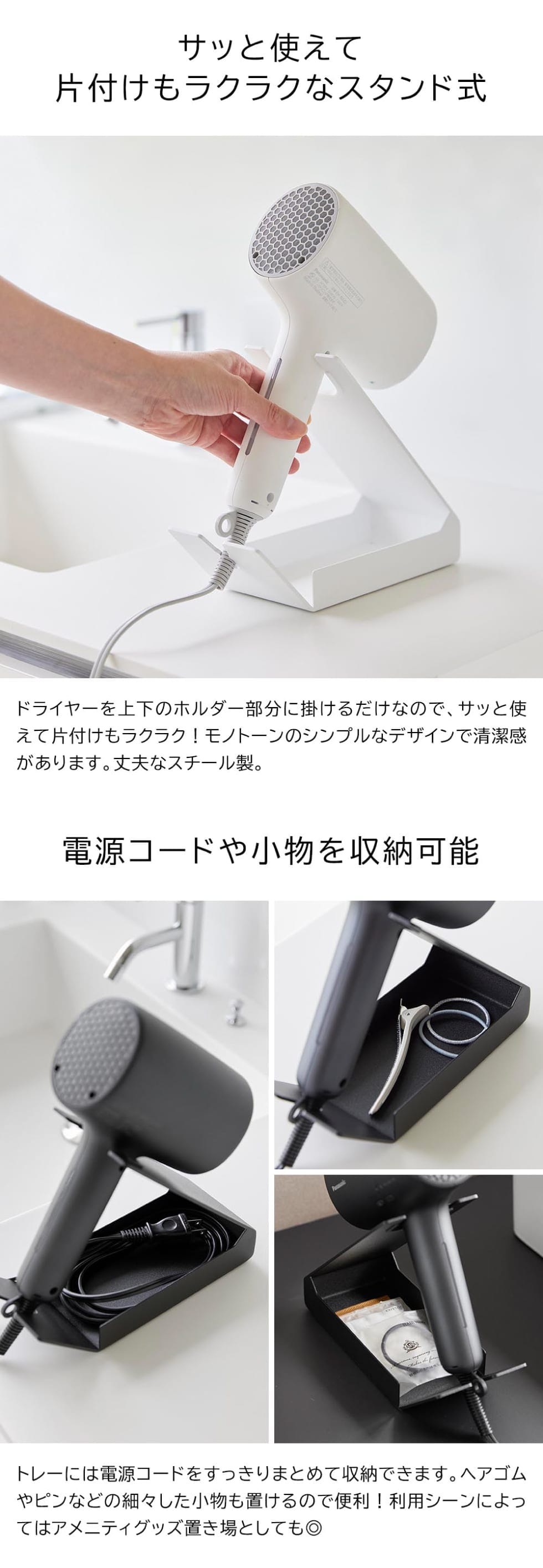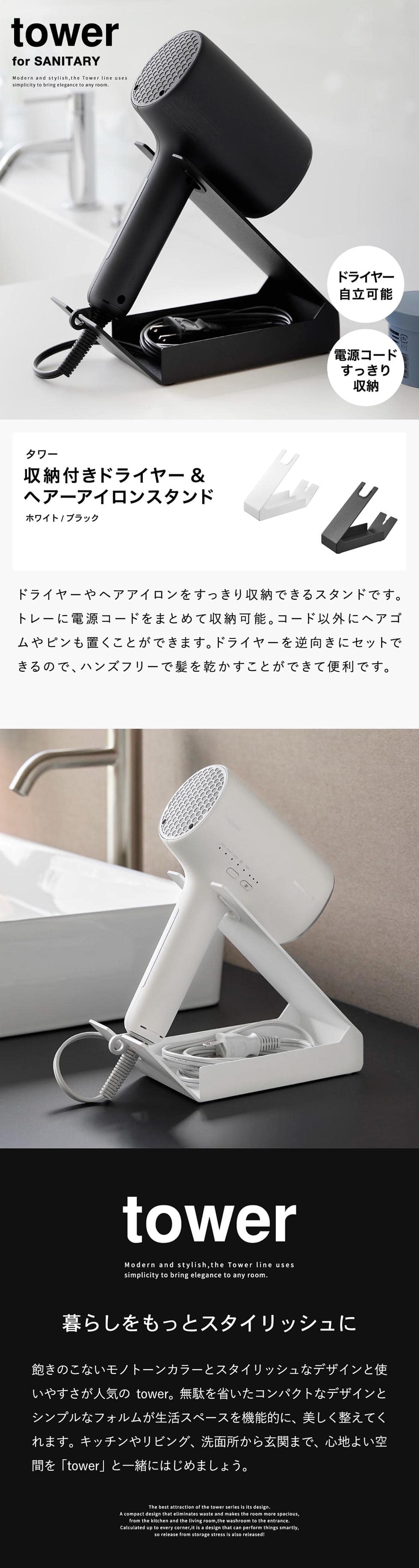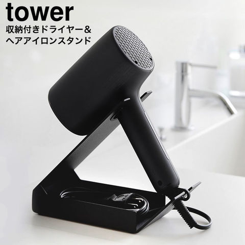 山崎実業 tower 収納付きドライヤー&ヘアーアイロンスタンド タワー 公式 1334 1335 送料無料 / ドライヤースタンド ヘアアイロン スタンド式 電源コード 小物 収納 yamazaki タワーシリーズ JGS / ブラック