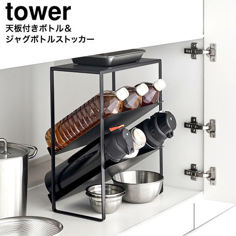 山崎実業 tower シンク下天板付きボトル&ジャグボトルストッカー タワー 公式 1336 1337 送料無料 / 収納棚 水筒 ペットボトル キッチン 洗面所 洗面台下 タワーシリーズ / ブラック