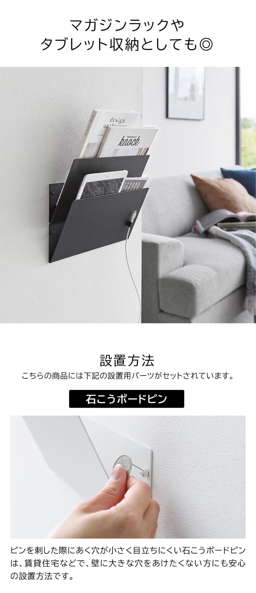 品質表示 本体×2:スチール(粉体塗装) ストッパー×2:スチール(粉体塗装) マグネット 滑り止め:シリコーンゴム |